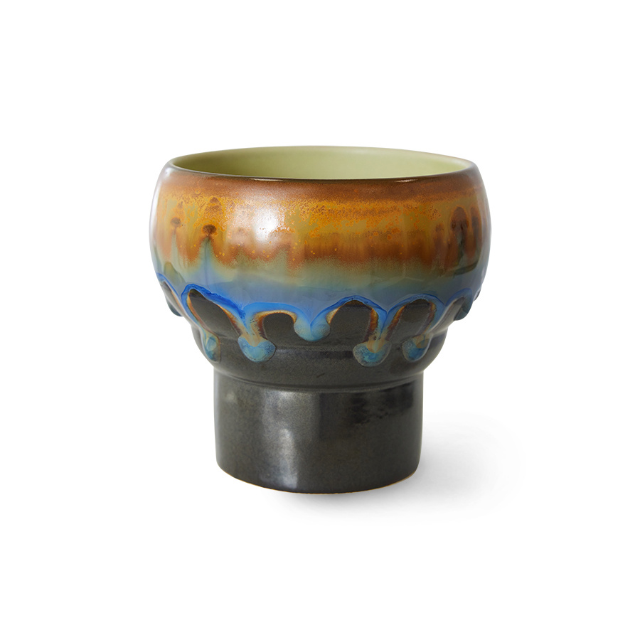 Lungo coffee is the perfect choice if you love the ultimate coffee flavour and enjoy a larger coffee. You'll also be drinking in style with our retro lungo cups. The curved mugs are a playful addition to the ceramics of the 70s, and are secretly one of our favourites.Material: Stoneware Food safe - Dishwasher proof - Microwave proof