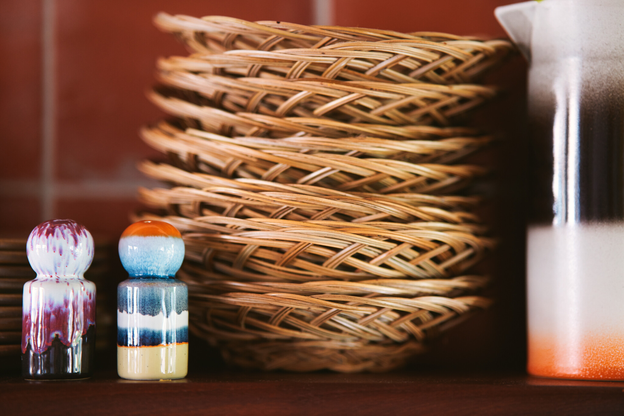 Banish the supermarket salt and pepper shakers and serve them in the distinctive 70s ceramic salt and pepper jars, just like the old days. - Stoneware - Reactive glaze - With silicone plug at the bottom - Food safe - Dishwasher proof; please remove the silicone ring first - Differences may appear - Each piece is unique due to the reactive glaze