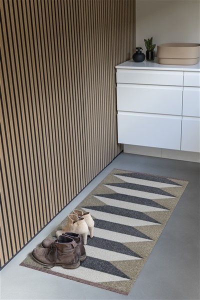 Give your guests a warm welcome with an ACCORDION design mat that is both functional and beautiful. It protects your floors from wet and dirty footwear, but is also a decorative element in your interior. Find your personal style with the fine colours and patterns and see the ACCORDION design, inspired by a harmonica's bellows, give your home a boost. The design of the mat gives an almost three-dimensional expression, which together with the colours gives the mat a very special depth. The mat is available in three sizes and, in addition to being used by the front door, can also be used by the garden door, in the kitchen, in the bathroom or next to the bed in the bedroom.