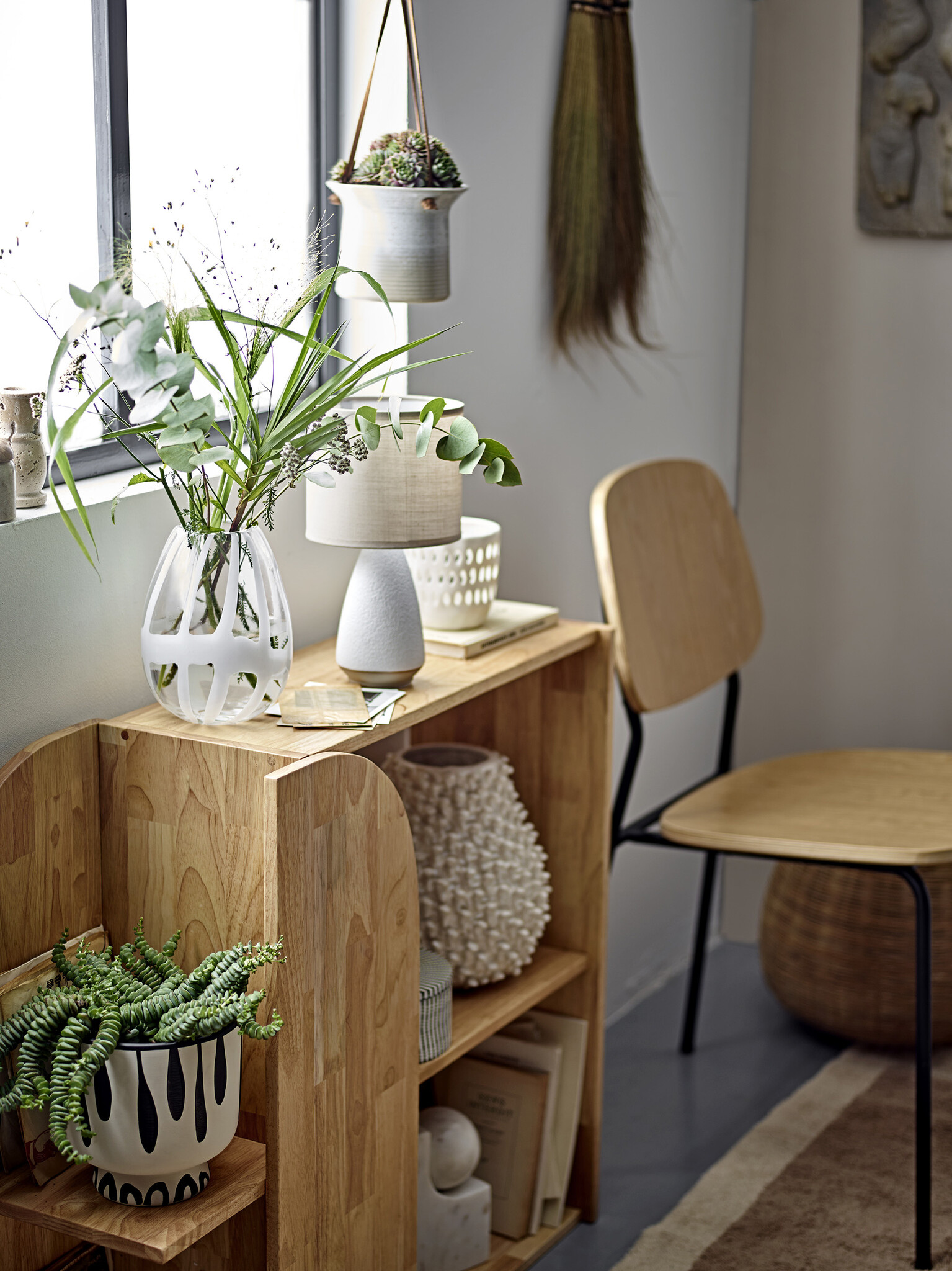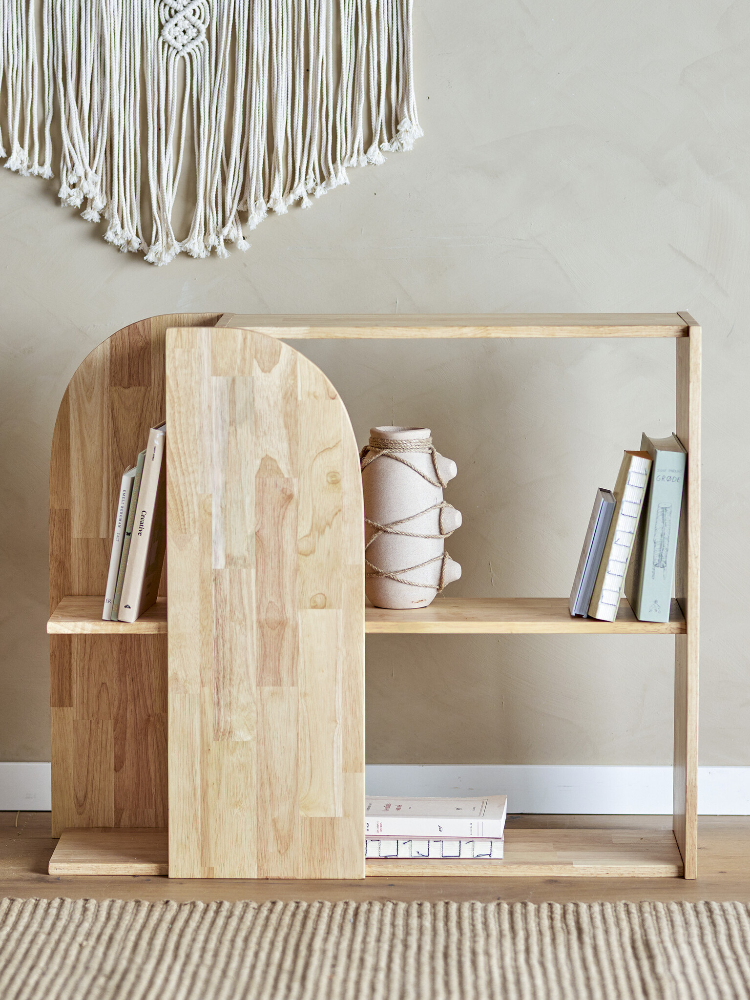 The Alec Bookcase by Bloomingville is made of light rubberwood and features a beautiful, graphic design that adds a modern touch to any room. The bookcase can be positioned in various ways, serving both as a traditional bookcase against the wall and as a low room divider, ideal for storing books and decorative items. Material: Rubberwood - Care instuctions: Wipe clean with a moist cloth.