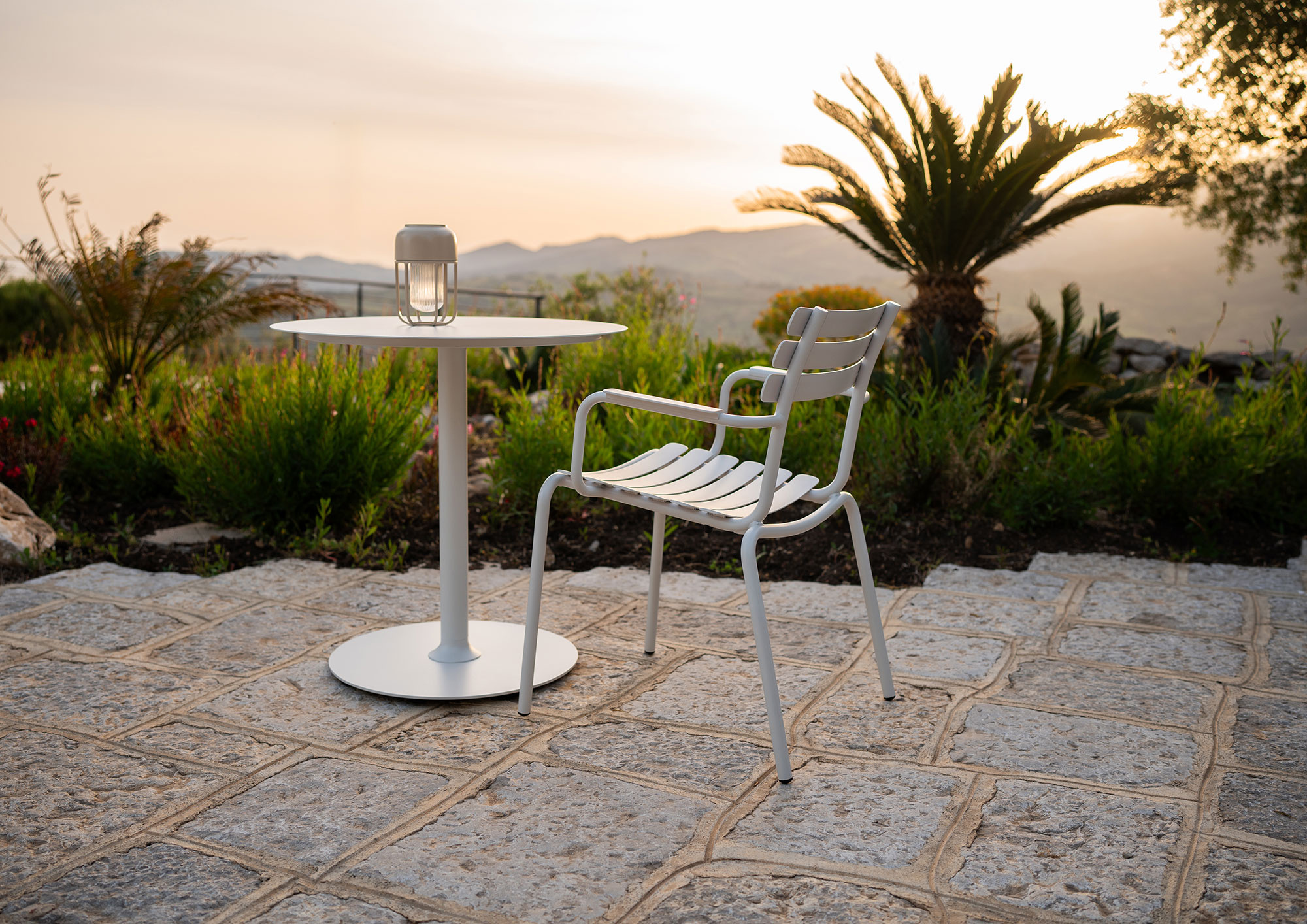 The curved aluminum slats are shaped to provide you with a comfortable seating experience and to give the chair a soft and inviting appearance. Designed and produced with durability in mind, ALUA is built to endure many years outdoors – and comes with a 5-year warranty. To further extend the lifespan of ALUA, spare parts and repair lacquer are available for purchase.