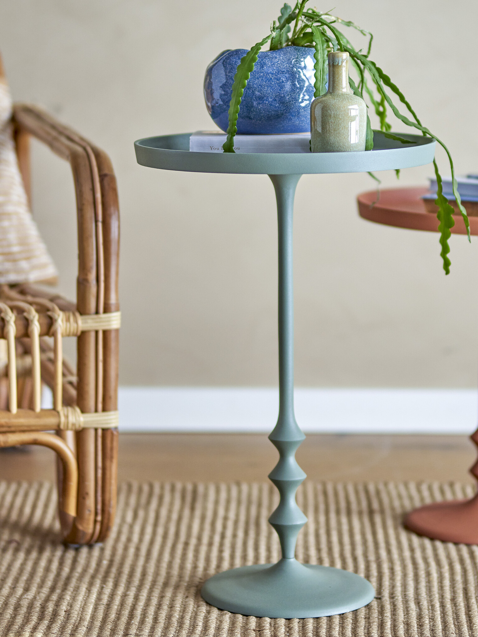 The Anjou Side Table by Bloomingville is in a light and elegant design in a dusty green color. The table creates a beautiful contrast to more neutral furniture and is easy to move around, allowing you to change the room's ambiance as needed. Material: Aluminum - Care instuctions: Wipe clean with a moist cloth.