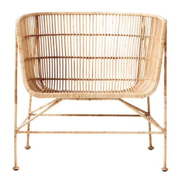 Create a wonderful lounge atmosphere in your home with the beautiful Cuun lounge chair from House Doctor. The lounge chair is woven using rattan and comes with an iron frame. Its natural look adds a simple, modern touch to the item, and it is therefore also easy to combine it with other pieces of furniture. The lounge chair can be used anywhere in the home, and it is therefore easy to move from room to room if needed. You can place a cushion in the chair, or put a small footstool in front to create a cosy corner in your home. With these additions, you will be ready to spend hours and hours of reading in the chair with a cosy blanket. Combine the chair with other pieces of furniture from the same series to create a unique and personal look in your home. The product is made from natural materials which means the color may vary. Material: Rattan, Iron Care instructions: Clean with a moist cloth, Indoor use only
