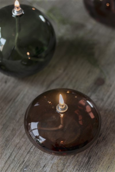 The coloured glass and round shape will complement a beautifully set table or look great as a still life on a coffee table or windowsill. Mix with oil lamps in the same design for a beautiful look in your interior.