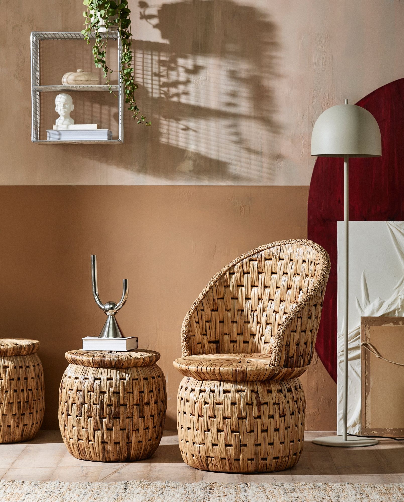 The BACCIO footstool/side table, woven in natural seagrass, is a stylish, eye-catching piece of furniture that seamlessly blends function and design. The woven seagrass, combined with its soft curves, merges nature and elegance.## The BACCIO stool/side table is for indoor use only.#Variations in appearance and color may occur as it is a natural material.#Max 90 kg.