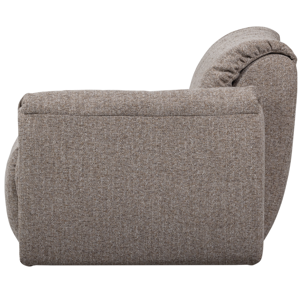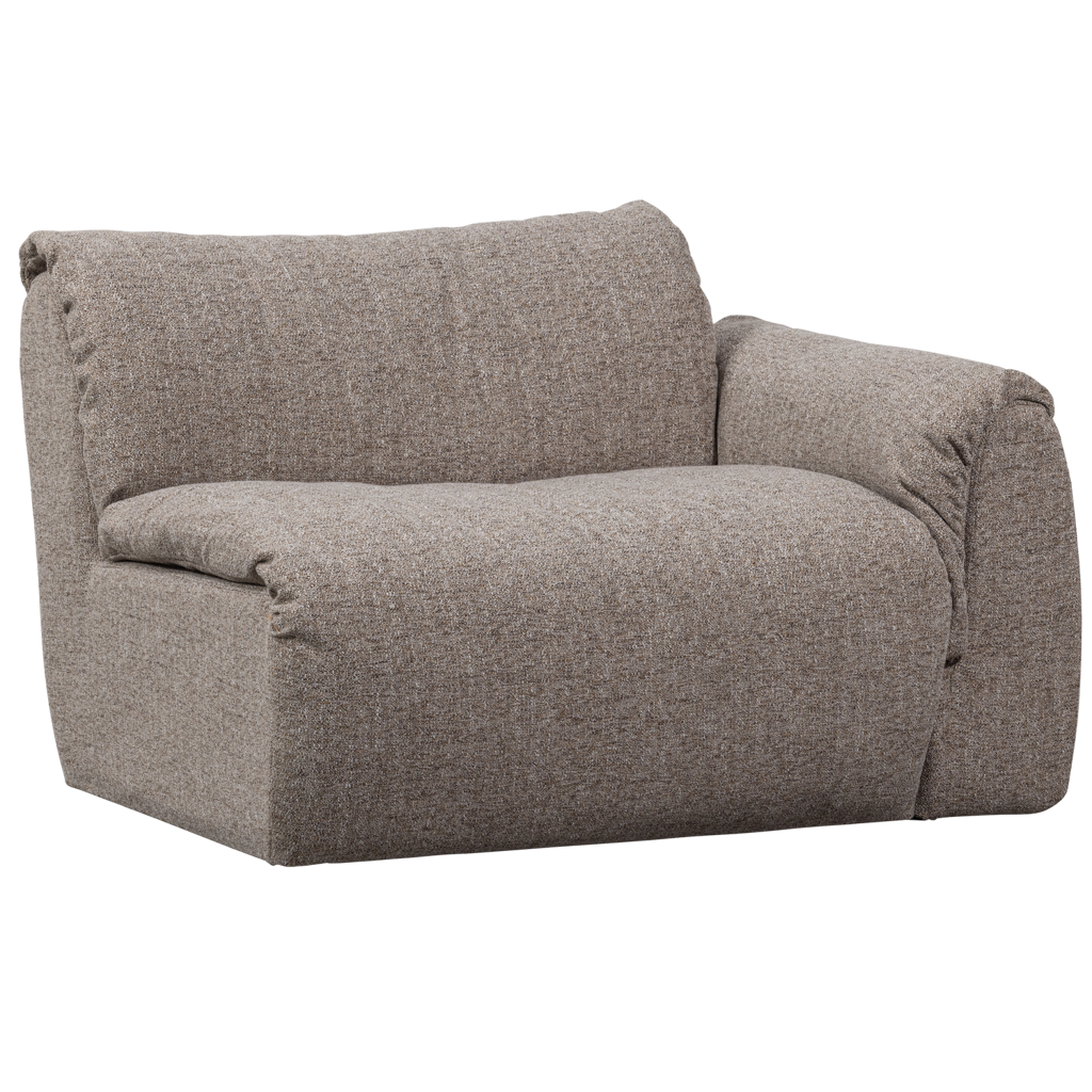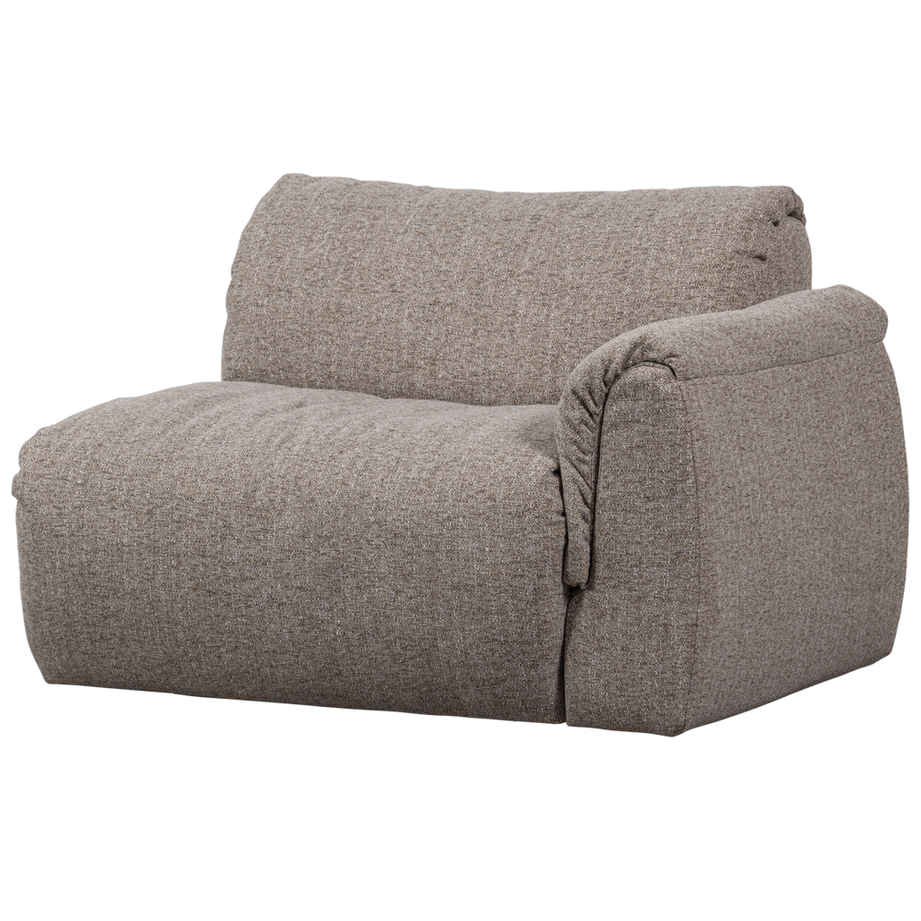 - Comfortabele bankenserie - Onderdeel van de Baggy-serie - Eindeloze combinatie en uitbreidingsmogelijkheden - H 81 cm x B 114 cm x D 101 cm Geef je woonkamer een nieuwe uitstraling met de veelzijdige Baggy elementenbank uit de collectie van het Nederlandse merk WOOOD. De Baggy-serie biedt oneindig veel opties, van een royale hoekbank tot een compacte 2-zitsbank, zodat je de perfecte indeling kunt creeren voor jouw ruimte. Deze sfeervolle bank met donzen toplaag en zachte stof straalt luxe uit en past moeiteloos in ieder interieur. Of je nu lekker wilt ontspannen of gezellig met familie en vrienden wilt samenkomen, de Baggy is de ideale plek om volledig tot rust te komen en van het moment te genieten. Relaxen was nog nooit zo comfortabel en stijlvol! Kies voor een ruime hoekbank, een 2-zits- of een 3-zitsbank! Maak je zithoek helemaal compleet met de bijpassende hocker. De Baggy bankenserie wordt in meerdere stoffen aangeboden, zo vind jij de perfecte match voor jouw interieur. Materiaal Onze Orari is een grof geweven stof met een zachte doch stevige grip. De stof heeft een subtiele kleurnuance en een grof weefpatroon. Orari is opgebouwd uit 100% polyester. De grof geweven stof is geschikt voor zeer intensief gebruik (Martindale 60.000). Orari staat bekend als een zeer kleurvaste stof en zal niet snel pillen. De vulling van de Baggy bestaat uit verschillende lagen/soorten foam met bovenop een laag van veren en siliconenvezels. Afmetingen - Hoogte: 81 cm - Breedte: 114 cm - Diepte: 101 cm - Zithoogte: 48 cm - Zitbreedte: 91 cm - Zitdiepte: 62 cm - Hoogte rugleuning vanaf vloer: 70 cm - Hoogte rugleuning vanaf zitting: 40 cm - Armleuning hoogte vanaf vloer: 66 cm - Armleuning breedte: 23 cm - Poothoogte: 4 cm - Gewicht: 33 kg - Draaggewicht: 150 kg Onderhoud De Orari grof geweven stof vraagt om een iets zorgzaam onderhoud. Bij vlekken is het aangeraden om te deppen met een lichtvochtige, schone doek. Wrijving kan zorgen voor verandering van de vleug. Bescherming: Deze stof is behandeld met Teflon Fabric Protector. Deze behandeling vormt een bescherming rondom elke vezel, dit maakt de stof bestand tegen spatwater, vuil en stof. Impregneren is om deze reden niet meer nodig. Houd de Baggy bank in topconditie door de veren regelmatig op te kloppen. Zo voorkom je ophoping en behoudt de bank zijn comfort en stevigheid. Dit verlengt de levensduur en zorgt voor optimaal zitcomfort. Wekelijks opkloppen wordt aanbevolen, afhankelijk van het gebruik. Levering Dit item wordt geleverd in een pakket. Plaats bij harde vloeren viltglijders onder de poten. Dit voorkomt beschadigingen aan de vloer.