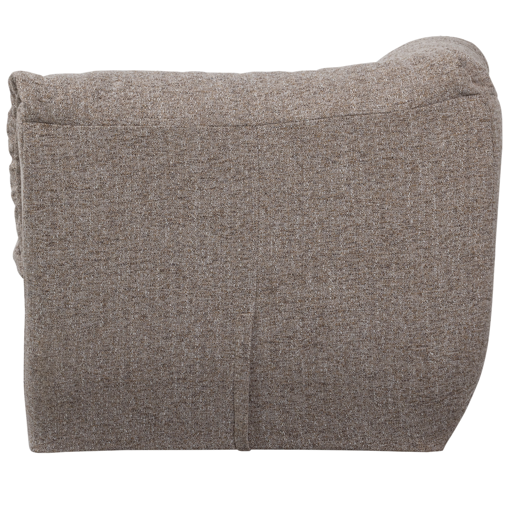 - Comfortabele bankenserie - Onderdeel van de Baggy-serie - Eindeloze combinatie en uitbreidingsmogelijkheden - H 81 cm x B 96 cm x D 96 cm Geef je woonkamer een nieuwe uitstraling met de veelzijdige Baggy elementenbank uit de collectie van het Nederlandse merk WOOOD. De Baggy-serie biedt oneindig veel opties, van een royale hoekbank tot een compacte 2-zitsbank, zodat je de perfecte indeling kunt creeren voor jouw ruimte. Deze sfeervolle bank met donzen toplaag en zachte stof straalt luxe uit en past moeiteloos in ieder interieur. Of je nu lekker wilt ontspannen of gezellig met familie en vrienden wilt samenkomen, de Baggy is de ideale plek om volledig tot rust te komen en van het moment te genieten. Relaxen was nog nooit zo comfortabel en stijlvol! Kies voor een ruime hoekbank en maak je zithoek helemaal compleet met de bijpassende hocker. De Baggy bankenserie wordt in meerdere stoffen aangeboden, zo vind jij de perfecte match voor jouw interieur. Materiaal Onze Orari is een grof geweven stof met een zachte doch stevige grip. De stof heeft een subtiele kleurnuance en een grof weefpatroon. Orari is opgebouwd uit 100% polyester. De grof geweven stof is geschikt voor zeer intensief gebruik (Martindale 60.000). Orari staat bekend als een zeer kleurvaste stof en zal niet snel pillen. De vulling van de Baggy bestaat uit verschillende lagen/soorten foam met bovenop een laag van veren en siliconenvezels. Afmetingen - Hoogte: 81 cm - Breedte: 96 cm - Diepte: 96 cm - Zithoogte: 48 cm - Zitbreedte: 53 cm - Zitdiepte: 53 cm - Hoogte rugleuning vanaf vloer: 70 cm - Hoogte rugleuning vanaf zitting: 40 cm - Poothoogte: 4 cm - Gewicht: 31 kg - Max. draaggewicht: 150 kg Onderhoud De Orari grof geweven stof vraagt om een iets zorgzaam onderhoud. Bij vlekken is het aangeraden om te deppen met een lichtvochtige, schone doek. Wrijving kan zorgen voor verandering van de vleug. Bescherming: Deze stof is behandeld met Teflon Fabric Protector. Deze behandeling vormt een bescherming rondom elke vezel, dit maakt de stof bestand tegen spatwater, vuil en stof. Impregneren is om deze reden niet meer nodig. Houd de Baggy bank in topconditie door de veren regelmatig op te kloppen. Zo voorkom je ophoping en behoudt de bank zijn comfort en stevigheid. Dit verlengt de levensduur en zorgt voor optimaal zitcomfort. Wekelijks opkloppen wordt aanbevolen, afhankelijk van het gebruik. Levering Dit item wordt geleverd in een pakket. Plaats bij harde vloeren viltglijders onder de poten. Dit voorkomt beschadigingen aan de vloer.