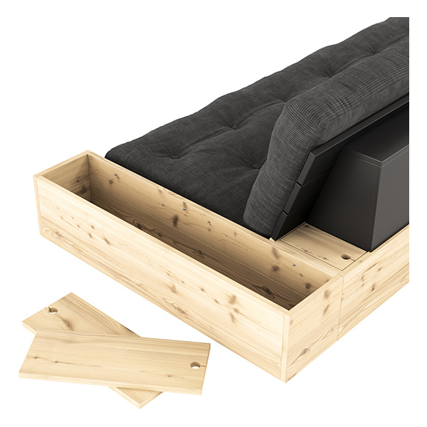 Crafted for simplicity and ease, the Base Sofa Bed transforms from a cozy bed into a chic sofa with a mere push under the base. This piece offers exceptional versatility, available both with and without storage modules. These modules can be customized with or without lids, allowing for a dual function: concealing everyday items or elegantly displaying your treasured possessions like coffee table books, ornamental objects, and greenery.