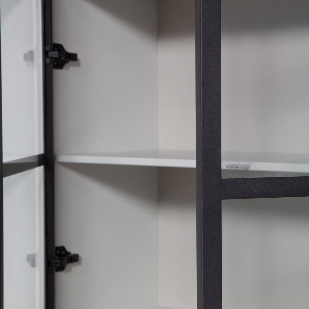 Bevat een metalen frame, één glasplaat per deur, push to open en soft-close.