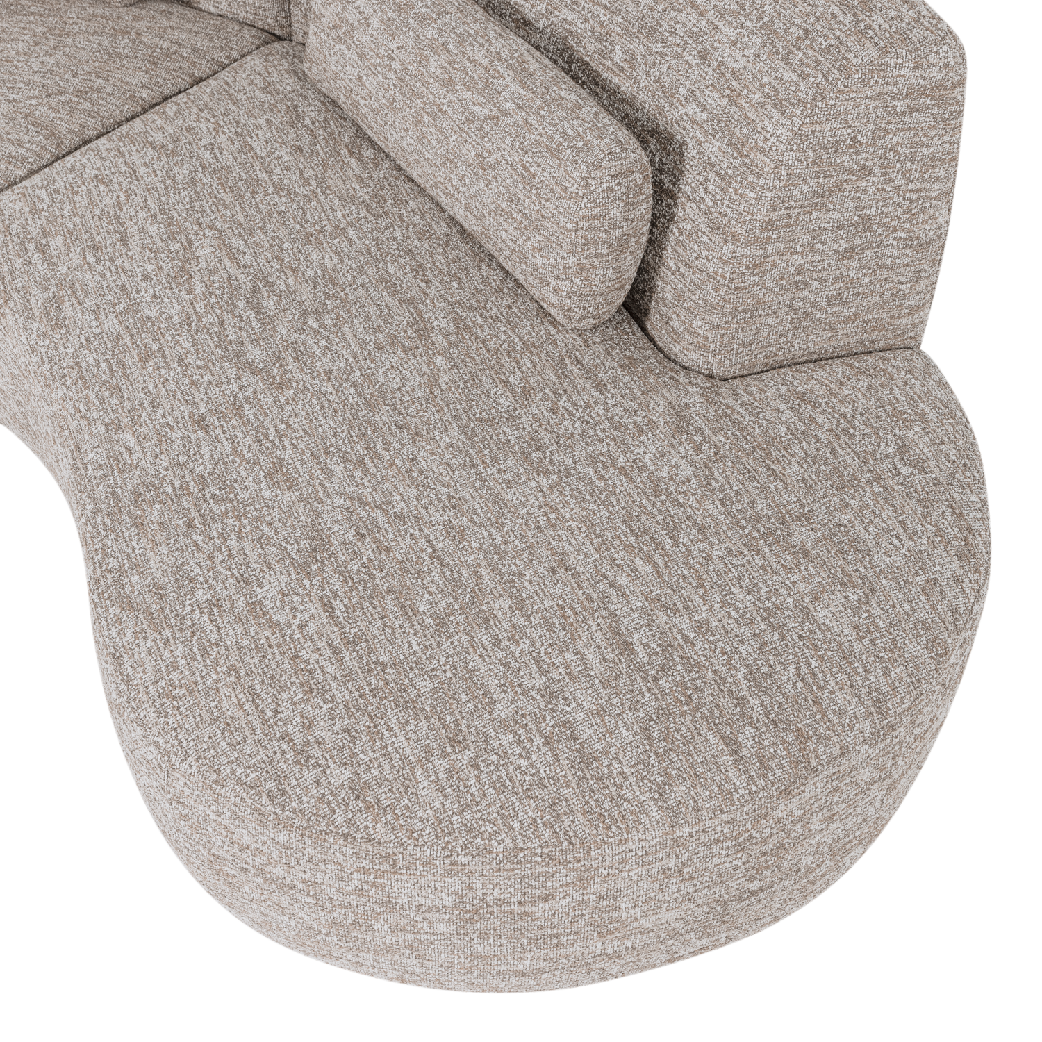 - Royale, 4-zits bank - Bekleed met een geweven stof met melange-effect - Actieve, comfortabele zit - H 74 cm x B 254 cm x D 122 cm Op zoek naar een royale, vriendelijk gevormde bank? Zoek dan niet verder! De Batavier halfronde 4-zits bank komt uit de collectie van het Nederlandse interieurmerk WOOOD en wordt gekenmerkt door de vriendelijke vorm en de zee aan ruimte. De perfecte familiebank om met het hele gezin comfortabel te relaxen en een leuke film te kijken. Met onze Batavier voeg jij moeiteloos design en comfort toe aan jouw woonkamer. Materiaal Onze Benson is een geweven stof met een melange-effect. De samenstelling is 100% polyester, wat de Benson-stof zowel stevig als comfortabel maakt. De stof heeft een Martindale-waarde van 70.000 en is daarmee geschikt voor dagelijks gebruik. Met de juiste zorg blijft de Benson-stof jarenlang van goede kwaliteit. Afmetingen - Hoogte: 74 cm - Breedte: 254 cm - Diepte: 122 cm - Zithoogte: 43 cm - Zitbreedte: 254 cm - Zitdiepte: 63 cm - Poothoogte: 1 cm - Hoogte rugleuning: 38 cm - Draaggewicht: 320 kg - Gewicht: 72 kg Onderhoud Houd de stof schoon door regelmatig te stofzuigen met een zachte borstel om de structuur niet te beschadigen. Vlekken? Gebruik een op water gebaseerde oplossing om de vlek voorzichtig te verwijderen en neem daarna nog even af met een licht vochtige doek. Wrijf niet, maar dep! Wrijven kan leiden tot beschadigingen of blijvende vlekken in de stof. Vermijd langdurige blootstelling aan direct zonlicht om de kwaliteit van de stof optimaal te behouden. Levering Het artikel wordt in meerdere pakketten geleverd en is eenvoudig te verbinden middels de reeds gemonteerde verbindingsbeugels. Plaats voor het beschermen van harde vloeren viltglijders aan de onderzijde van de poten.