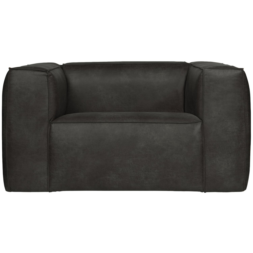 - Robust armchair - Upholstered in leather look (70% leather fibre / 30% polyester) - Tough and voluminous design - H 74 cm x W 146 cm x D 98 cm The Bean sofa collection comes from the Dutch interior design label WOOOD and, with its robust design, provide