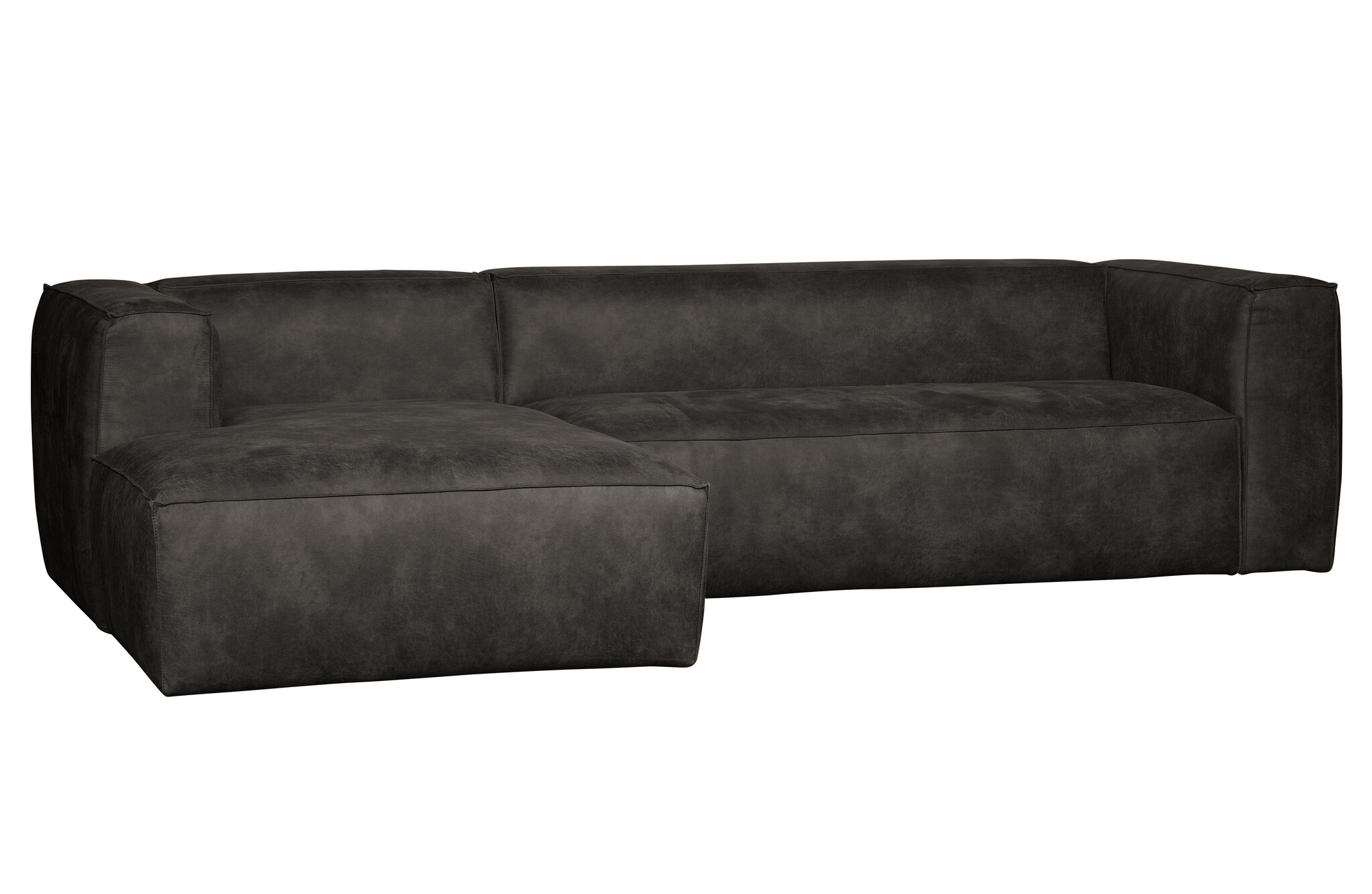 - Tough corner sofa - Upholstered in a leather look (70% leather fibre / 30% polyester) - Coarse and voluminous design - H 73 cm x W 305 cm x D 96/175 cm The Bean sofa collection comes from the Dutch interior design label WOOOD and, with its robust design