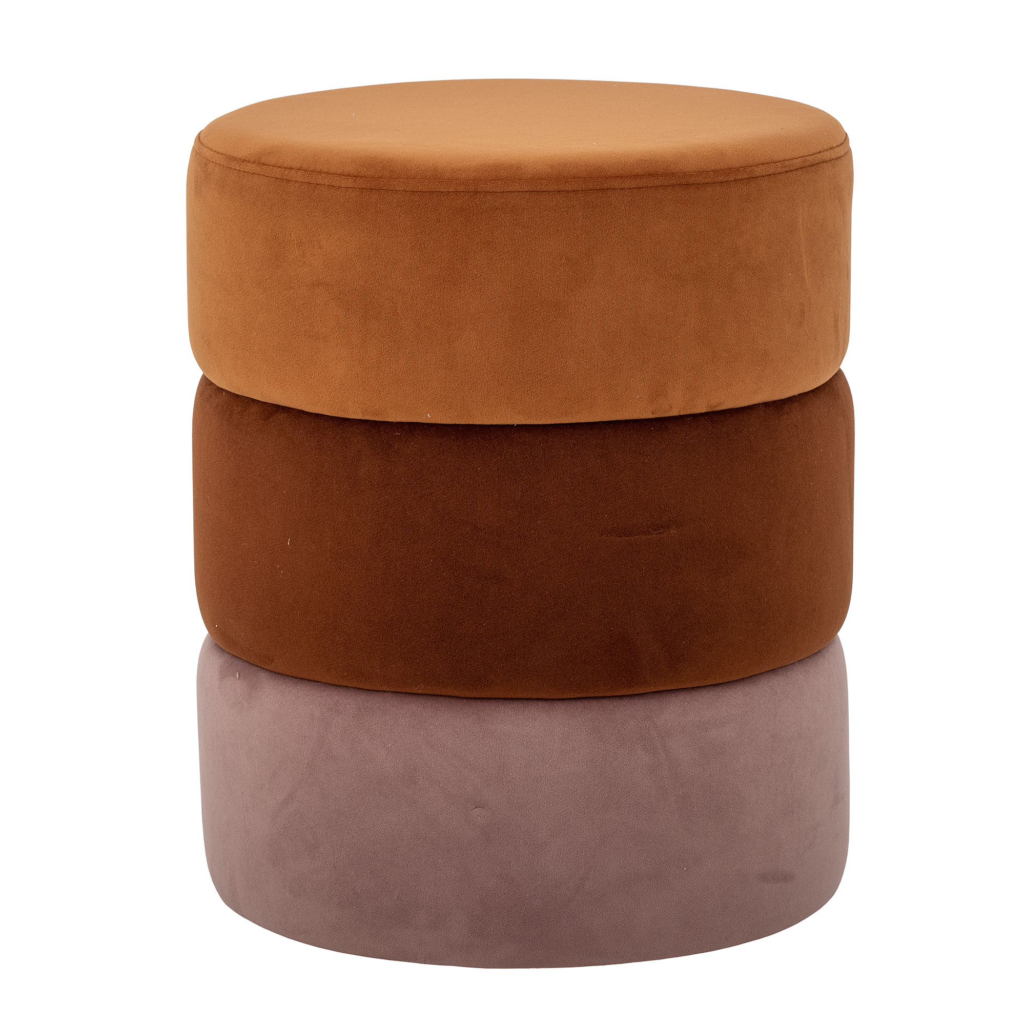 The Bilbao Pouf by Bloomingville is perfect for creating a personal interior. It's upholstered in velour in three matching, warm shades, adding a cozy atmosphere. Use it as an extra seat, a footrest, a practical pouf, or to add a decorative focal point to the room. Material: Polyester, MDF