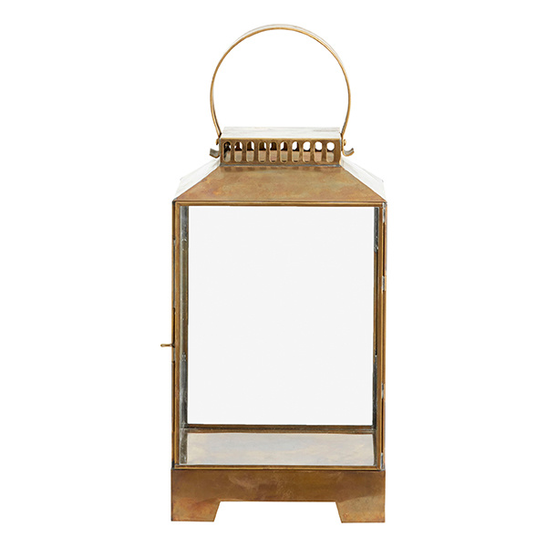 BITRA lantern is handmade from brass and features an antique finish. This rectangular lantern has glass on all sides and a functional handle on top. Create warm, cozy moods by adding candles or other decorative items to your BITRA. The lantern can be opened and closed on one side. Material: Brass, glass