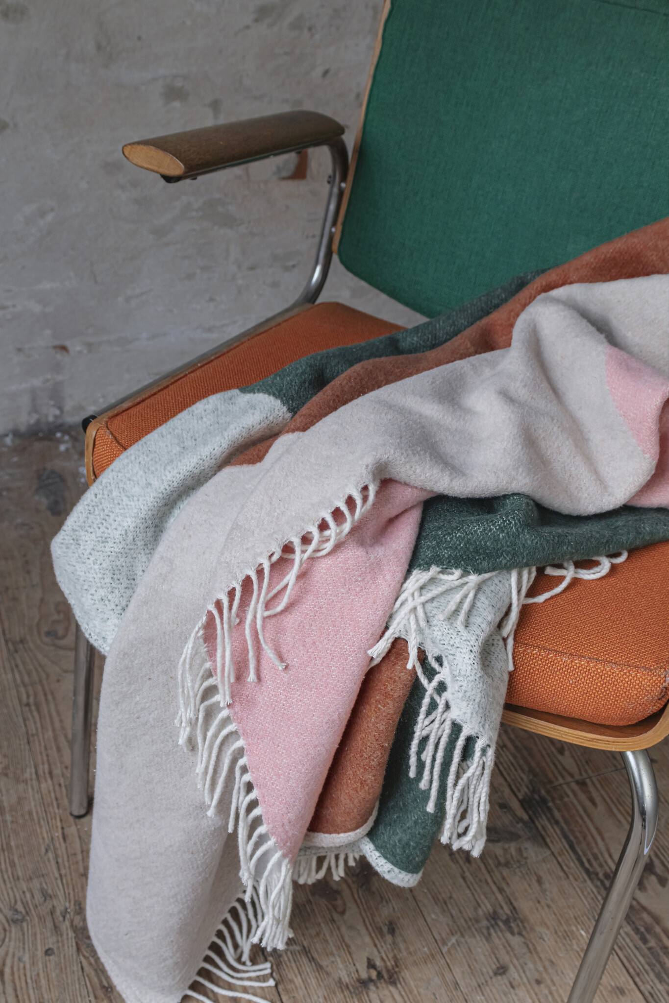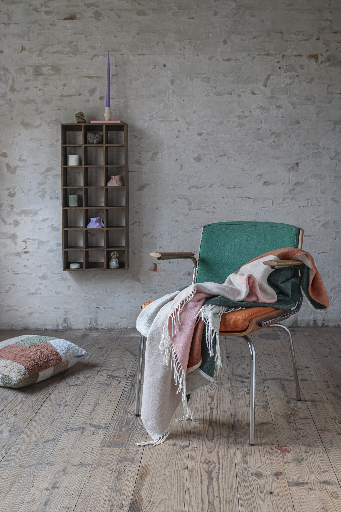 Add a harmonious and colourful touch to your home with the BRICK throw. Featuring a sand-colored base with touches of green, bold blocks of green and orange, and a playful pink square in the corner, this throw seamlessly combines graphic design with warmth and personality. Fringes on both ends elegantly complete the design.