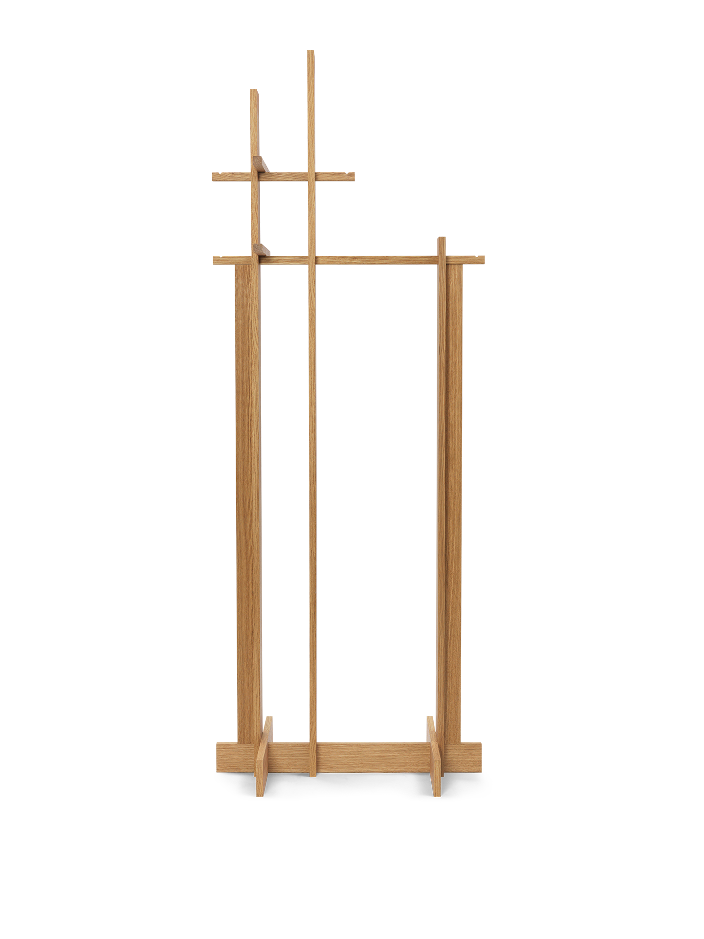 The Bridge Clothes Stand redefines clothes storage with its elevated design. Inspired by wooden architectural constructions, the clothes stand features airy, clean lines. Crafted from FSC™ certified oak veneer with MDF core, intricate details and expert joinery make it a statement piece that seamlessly combines functionality and elegance. With multiple rails and hooks, it provides a stylish solution for hanging clothes, hats, jackets and more. Material: Panels: Oiled oak veneer with MDF core. Rack: Solid oak. FSC™ Mix-certified. Product note: Registered design - Responsibility note: FSC™ Certified - Care instructions: Wipe with a damp cloth