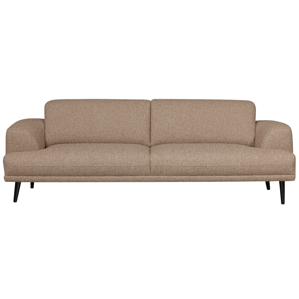 -Opvallende 3-zits bank -Luchtige uitstraling -Voorzien van een volumineuze stof -H 76 cm x B 234 cm x D 93 cm Deze opvallende Brush 3-zitter uit de collectie van het Nederlandse merk vtwonen vormt een uitstekende basis voor een stijlvolle zithoek. De hoge poten geven de bank een luchtige uitstraling, terwijl de fraaie afgeronde vormen bijdragen aan een vriendelijke en uitnodigende sfeer. Dankzij het tijdloze design past deze bank moeiteloos in diverse interieurstijlen. Materiaal Onze Saar boucle is een luxe stof met een verfijnde textuur. Met een Martindale-score van 100.000 is de stof zeer geschikt voor intensief gebruik. De stof bestaat uit 100% polyester en dankzij de gebruikte weeftechniek heeft de Saar boucle een volumineuze uitstraling. Afmetingen -Hoogte: 76 cm -Breedte: 234 cm -Diepte: 93 cm -Zithoogte: 47 cm -Zitbreedte: 178 cm -Zitdiepte: 60 cm -Hoogte armleuning: 60 cm -Diepte armleuning: 75 cm -Poothoogte: 18 cm -Gewicht: 59 kg Onderhoud De compact geweven stof is eenvoudig schoon te houden met de stofzuiger met meubelborstel. Bij eventuele vlekken direct droogdeppen met een schone doek of tissue. Beslist niet wrijven! Meeste vloeistoffen zijn te verwijderen met lauw water. Maak gebruik van een zachte, ronddraaiende beweging van buiten naar binnen. Levering Deze bank wordt in een pakket geleverd. Plaats bij harde vloeren viltglijders onder de poten. Dit voorkomt beschadigingen aan de vloer.