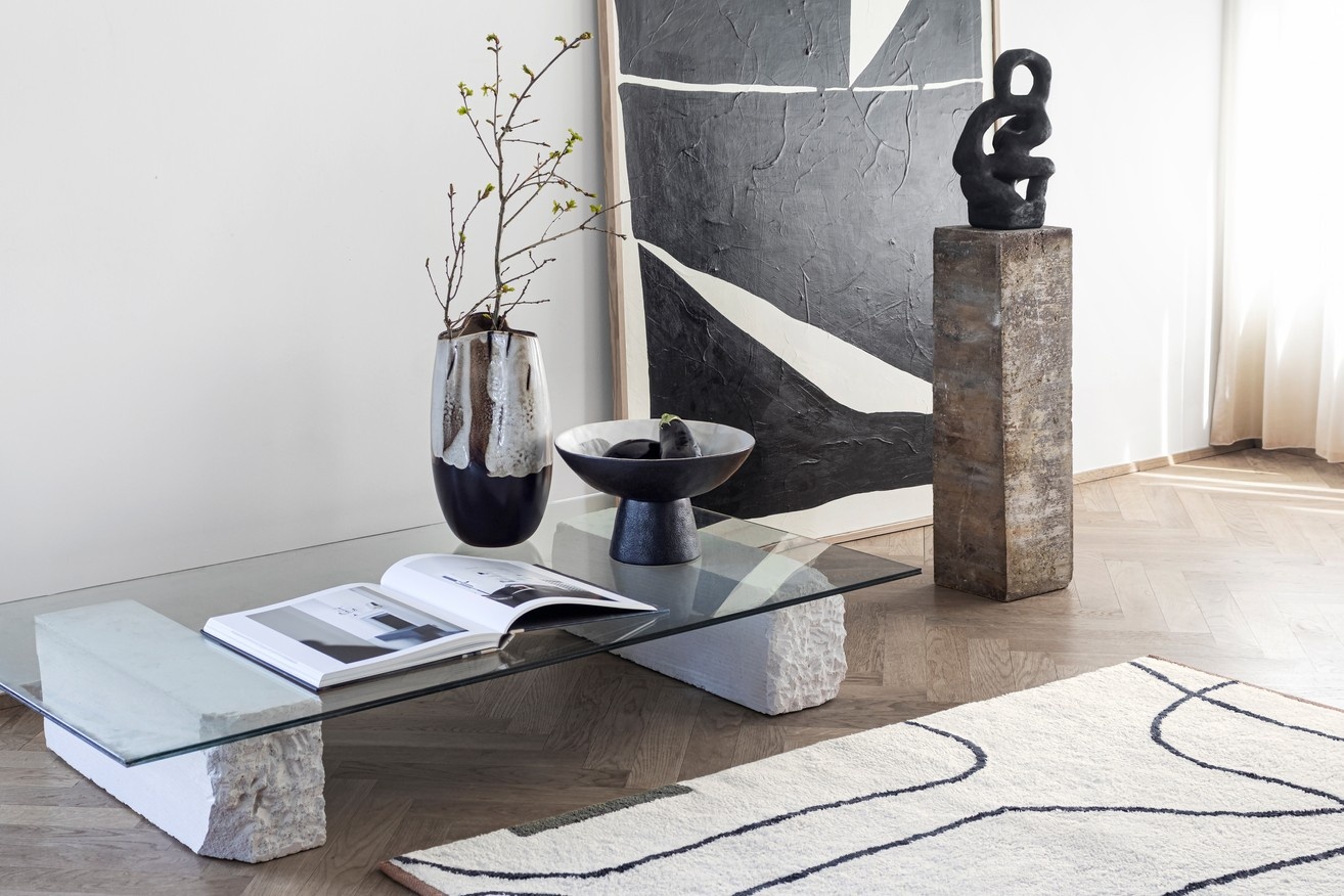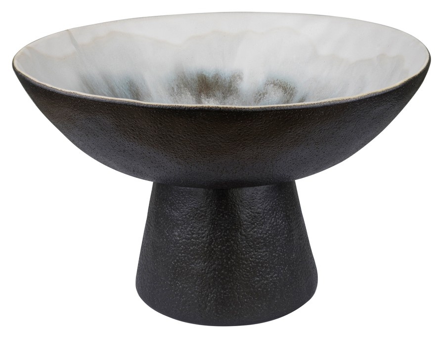 The BY HAND bowl on foot from Mette Ditmer is a decorative piece where artistic playfulness meets natural simplicity. The hand-glazed surface features matte shades of off-white, grey, and brown black, blending into organic patterns that make each bowl entirely unique. With its irregular shape and matte finish, the bowl has a calm, balanced expression full of character. It is food-safe and works beautifully for serving as well as a decorative element in the home. - Material: Stoneware - Washing/Care Instructions: Wash by hand or use a damp cloth. We recommend ordinary dishwashing liquid. The product is not suitable for the dishwasher.