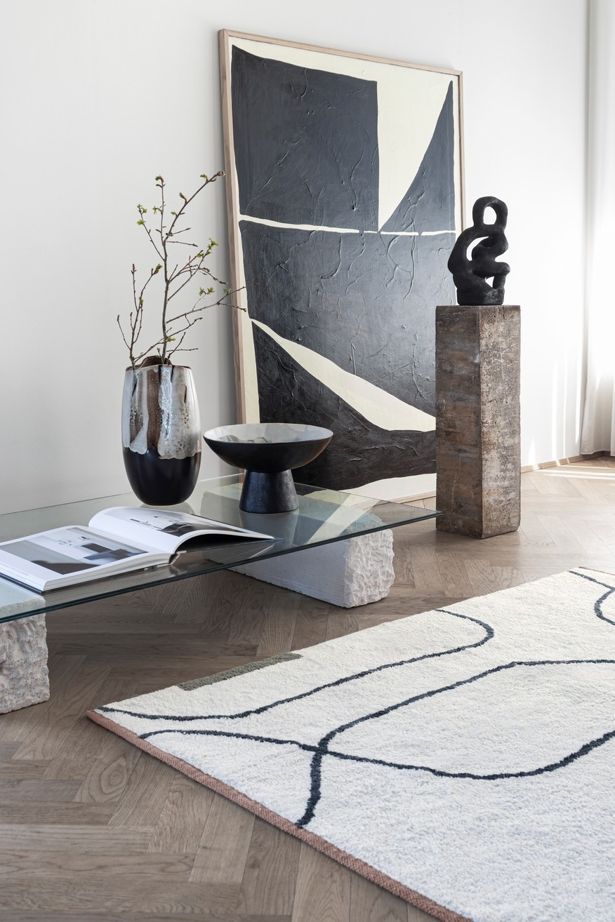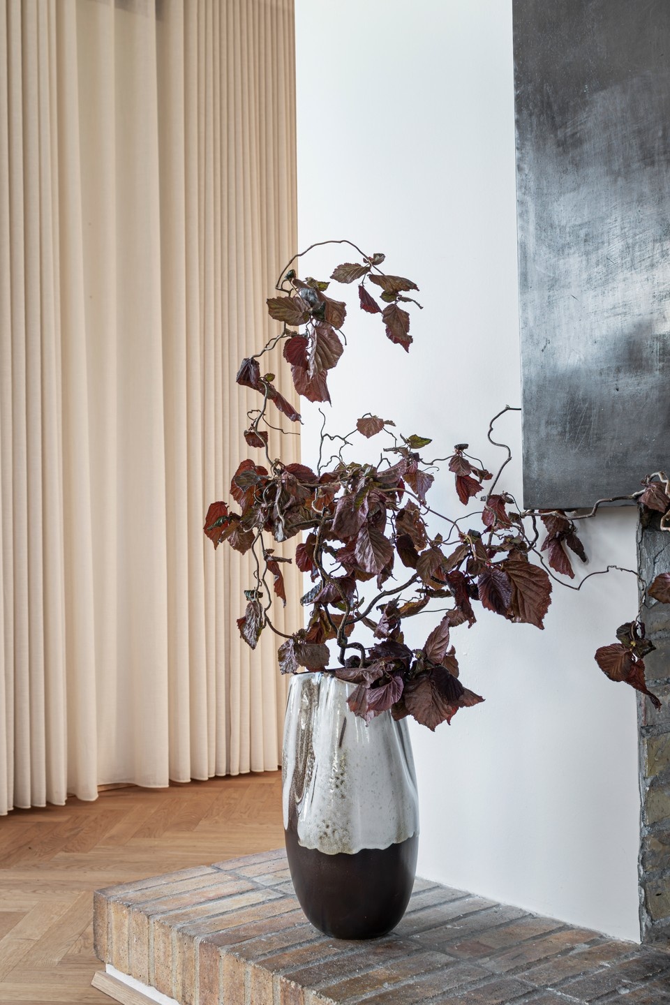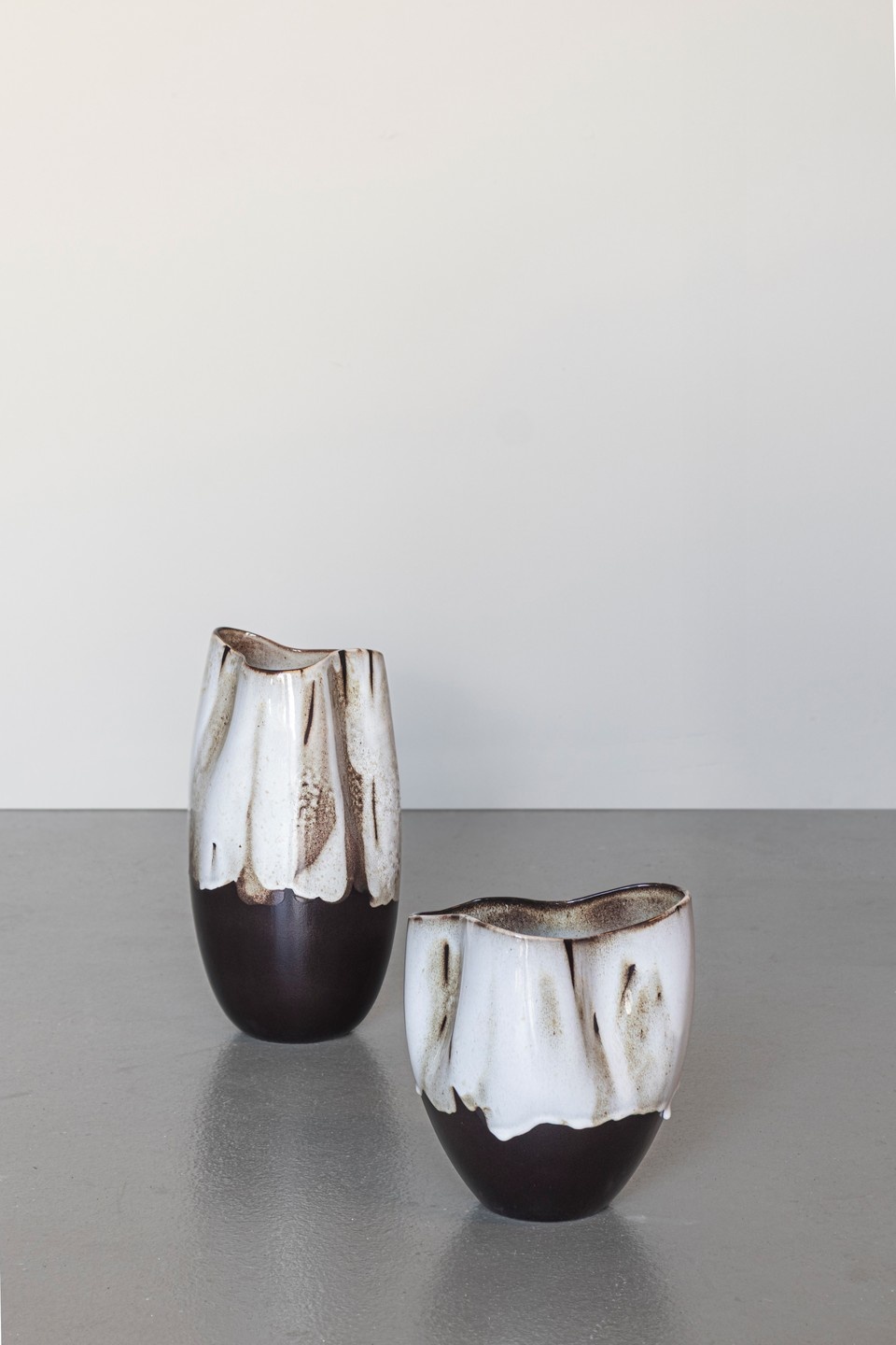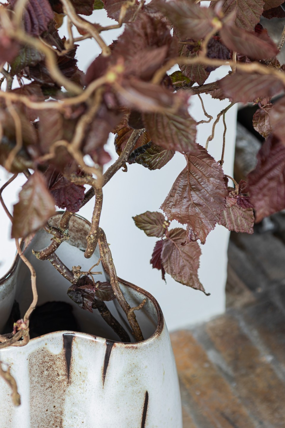 The BY HAND curve vase from Mette Ditmer blends modern form with traditional craftsmanship. Its organic, asymmetrical shape adds a playful touch. A semi-matte dark brown base contrasts with a glossy off-white glaze that flows across the surface, creating soft transitions in warm, earthy tones. The flowing glaze and natural variation make each vase truly one of a kind. Use it as a decorative statement on its own or fill it with seasonal branches from the garden. - Material: Stoneware - Washing/Care Instructions: Wash by hand or use a damp cloth. We recommend ordinary dishwashing liquid. The product is not suitable for the dishwasher.