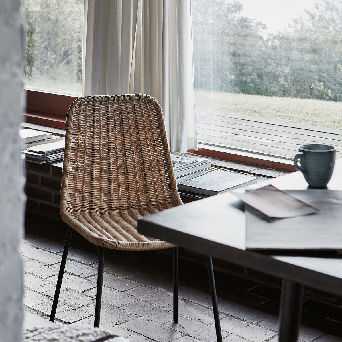 The choice of chairs can be decisive for the overall expression of the dining room or terrace. By using this chair, Hapur, from House Doctor, you are guaranteed a stylish look that will provide the room with warmth. The braided material has a natural look that matches the dark legs and the simple shape of the dining chair perfectly. Suitable for both indoor and outdoor use. Material: PE wicker, Iron Care instructions: Clean with a moist cloth
