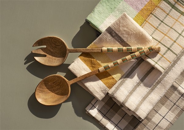 Madam Stoltz Checked cotton napkins Off white, yellow, green