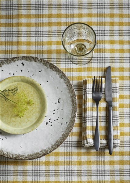 Madam Stoltz Madam Stoltz Checked table cloth Yellow, off white, charcoal Yellow, off white, charcoal