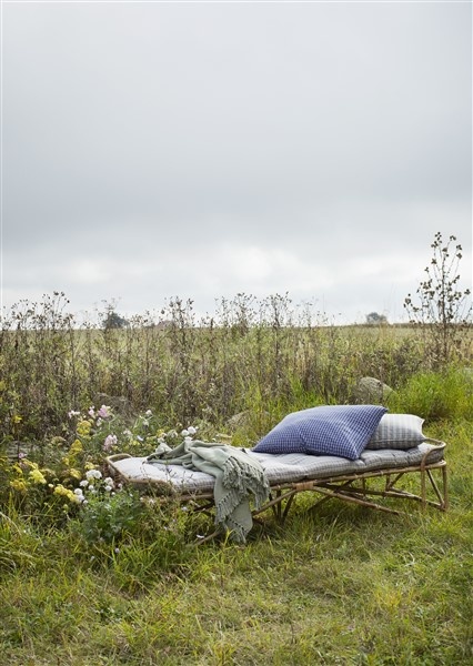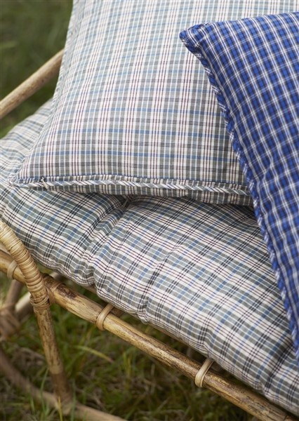 Madam Stoltz Checked woven cushion cover, Blue, grey, white