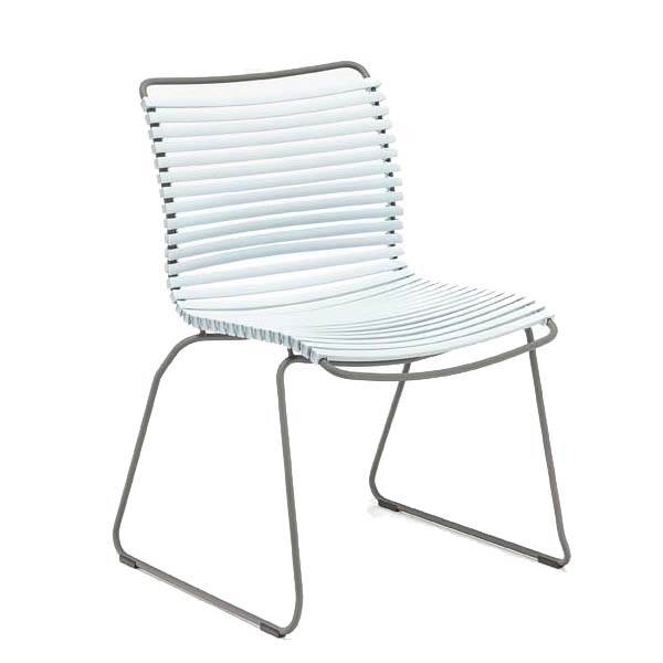 CLICK Dining chair - no armrests. CLICK chair is simple, honest and ergonomically well thought out. It is beautiful in its repetition around the table and because the lamellas can be replaced, you can mix and change the colours as often as you like. CLICK dining chair comes in 3 variants - with or without armrests. CLICK dining chairs are stackable. Material: Powder coated metal for outdoor use with PP plastic lamellas and bamboo armrests.