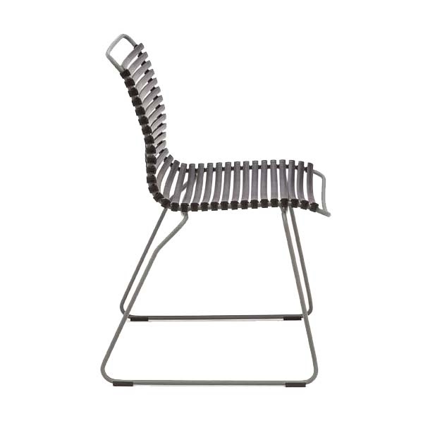 CLICK Dining chair - no armrests. CLICK chair is simple, honest and ergonomically well thought out. It is beautiful in its repetition around the table and because the lamellas can be replaced, you can mix and change the colours as often as you like. CLICK dining chair comes in 3 variants - with or without armrests. CLICK dining chairs are stackable. Material: Powder coated metal for outdoor use with PP plastic lamellas and bamboo armrests.