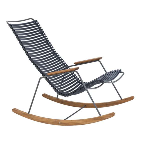The CLICK Rocking chair is a comfortable lounge chair for those who want to rock. Lamellas can be removed and replaced on the frame, which makes it possible to mix and change colours. Material: Powder coated metal for outdoor use with PP plastic lamellas and bamboo armrests. For cleaning use a wet cloth or a soft brush. Do not use any kind of chemicals for cleaning.We recommend you to oil the bamboo before taking it into use, and again after approx. 4 weeks, then as needed (3 – 4 times a year). We recommend oil suitable for outdoor bamboo furniture including fungicide. Outside the season, store in a dry and ventilated room. Do not cover the bamboo, as bamboo is a natural material that needs air to avoid that fungi and mold will spread into the material.
