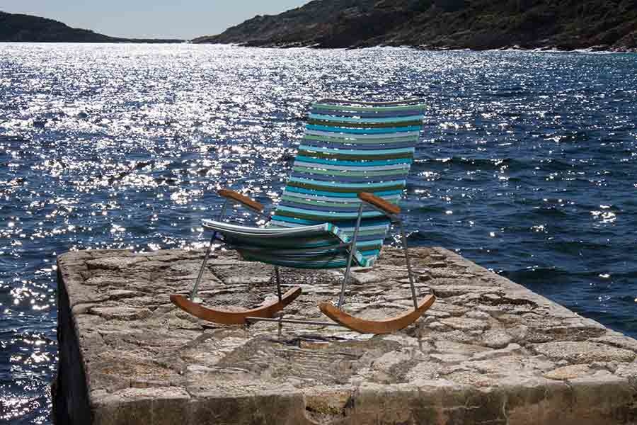 The CLICK Rocking chair is a comfortable lounge chair for those who want to rock. Lamellas can be removed and replaced on the frame, which makes it possible to mix and change colours. Material: Powder coated metal for outdoor use with PP plastic lamellas and bamboo armrests. For cleaning use a wet cloth or a soft brush. Do not use any kind of chemicals for cleaning.We recommend you to oil the bamboo before taking it into use, and again after approx. 4 weeks, then as needed (3 – 4 times a year). We recommend oil suitable for outdoor bamboo furniture including fungicide. Outside the season, store in a dry and ventilated room. Do not cover the bamboo, as bamboo is a natural material that needs air to avoid that fungi and mold will spread into the material.