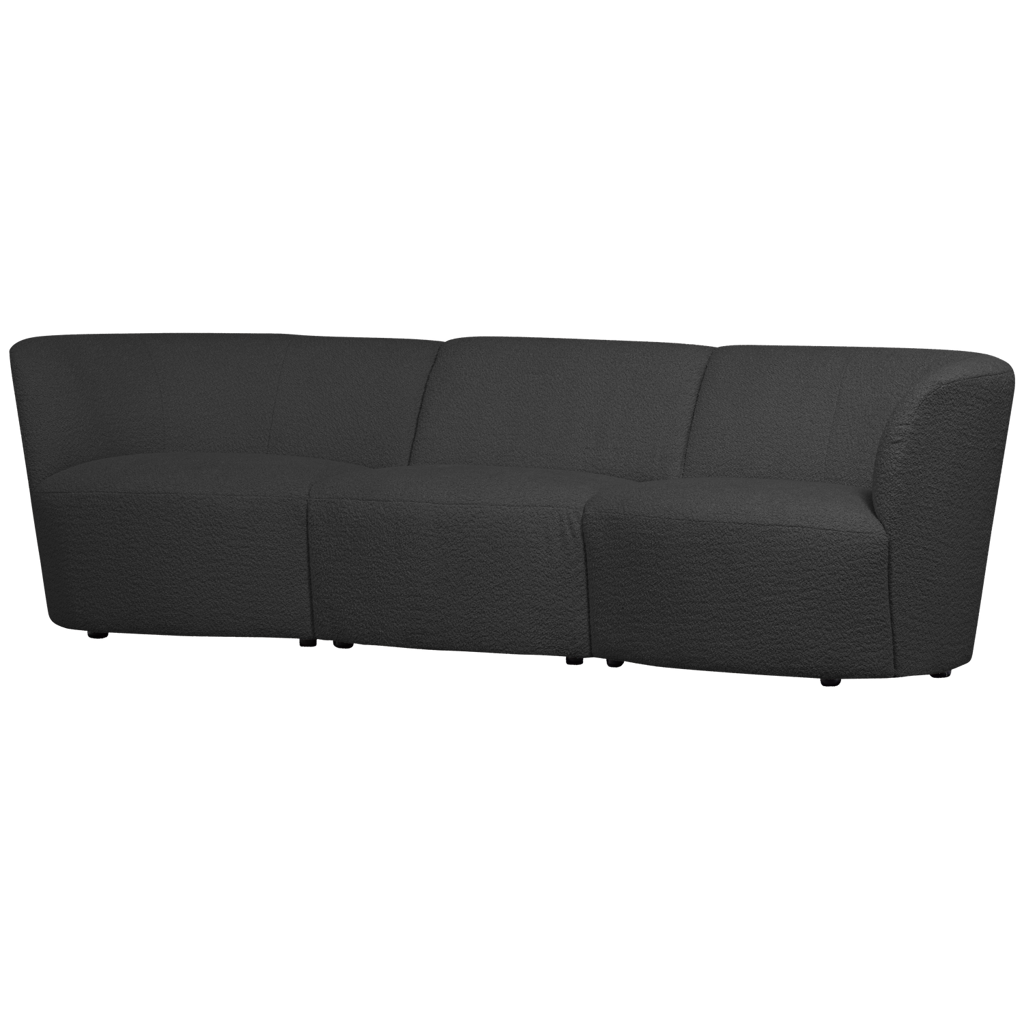 - 3-seater sofa - Playful design - Upholstered in a woolly boucle (100% polyester) - H 70 cm x W 227 cm x D 72 cm The Coco series, from the collection of Dutch interior design brand WOOOD, is very suitable for large and small living spaces. The Coco elements are very compact in size, have a softly rounded design and can also be placed loose in the room because of the upholstery on each side. Material Our soft Almón boucle has an elegant texture that brings instant warmth to the home. The boucle fabric has a Martindale of 60,000, which means it is suitable for fairly intensive use. The dense weave ensures the strength of the fabric, which means the Almón boucle will not wear or tear easily. Each colour also has a high colour fastness, but it is recommended to avoid direct sunlight to avoid colour shades. Dimensions - Height: 70 cm - Width: 227 cm - Depth: 72 cm - Seat height: 42 cm - Seat width: 187 cm - Seat depth: 52 cm - Armrest height: 70/28 cm - Banister thickness: 20 cm - Leg height: 2 cm - Leg thickness: ø 3 cm - Weight capacity: 100 kg per seat Care instructions Dab any stains dry immediately with a clean cloth or tissue. Do not rub! Most liquids can be removed with lukewarm water. Use a gentle circular motion from the outside inwards. For years of stain protection, the fabric can be impregnated. Impregnate the seating unit as soon as possible after receipt to ensure instant protection. Delivery Coco elements are delivered individually. To protect hard floors, place felt glides on the underside of the plastic floor protectors.