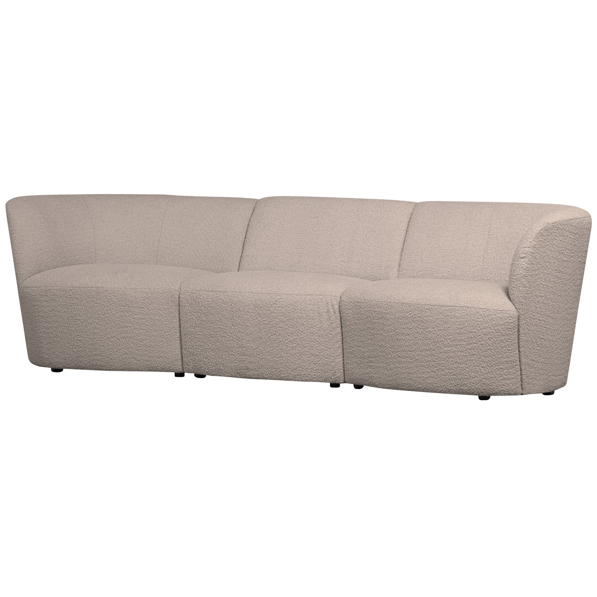 - 3-seater sofa - Playful design - Upholstered in a woolly boucle (100% polyester) - H 70 cm x W 227 cm x D 72 cm The Coco series, from the collection of Dutch interior design brand WOOOD, is very suitable for large and small living spaces. The Coco elements are very compact in size, have a softly rounded design and can also be placed loose in the room because of the upholstery on each side. Material Our soft Almón boucle has an elegant texture that brings instant warmth to the home. The boucle fabric has a Martindale of 60,000, which means it is suitable for fairly intensive use. The dense weave ensures the strength of the fabric, which means the Almón boucle will not wear or tear easily. Each colour also has a high colour fastness, but it is recommended to avoid direct sunlight to avoid colour shades. Dimensions - Height: 70 cm - Width: 227 cm - Depth: 72 cm - Seat height: 42 cm - Seat width: 187 cm - Seat depth: 52 cm - Armrest height: 70/28 cm - Banister thickness: 20 cm - Leg height: 2 cm - Leg thickness: ø 3 cm - Weight capacity: 100 kg per seat Care instructions Dab any stains dry immediately with a clean cloth or tissue. Do not rub! Most liquids can be removed with lukewarm water. Use a gentle circular motion from the outside inwards. For years of stain protection, the fabric can be impregnated. Impregnate the seating unit as soon as possible after receipt to ensure instant protection. Delivery Coco elements are delivered individually. To protect hard floors, place felt glides on the underside of the plastic floor protectors.