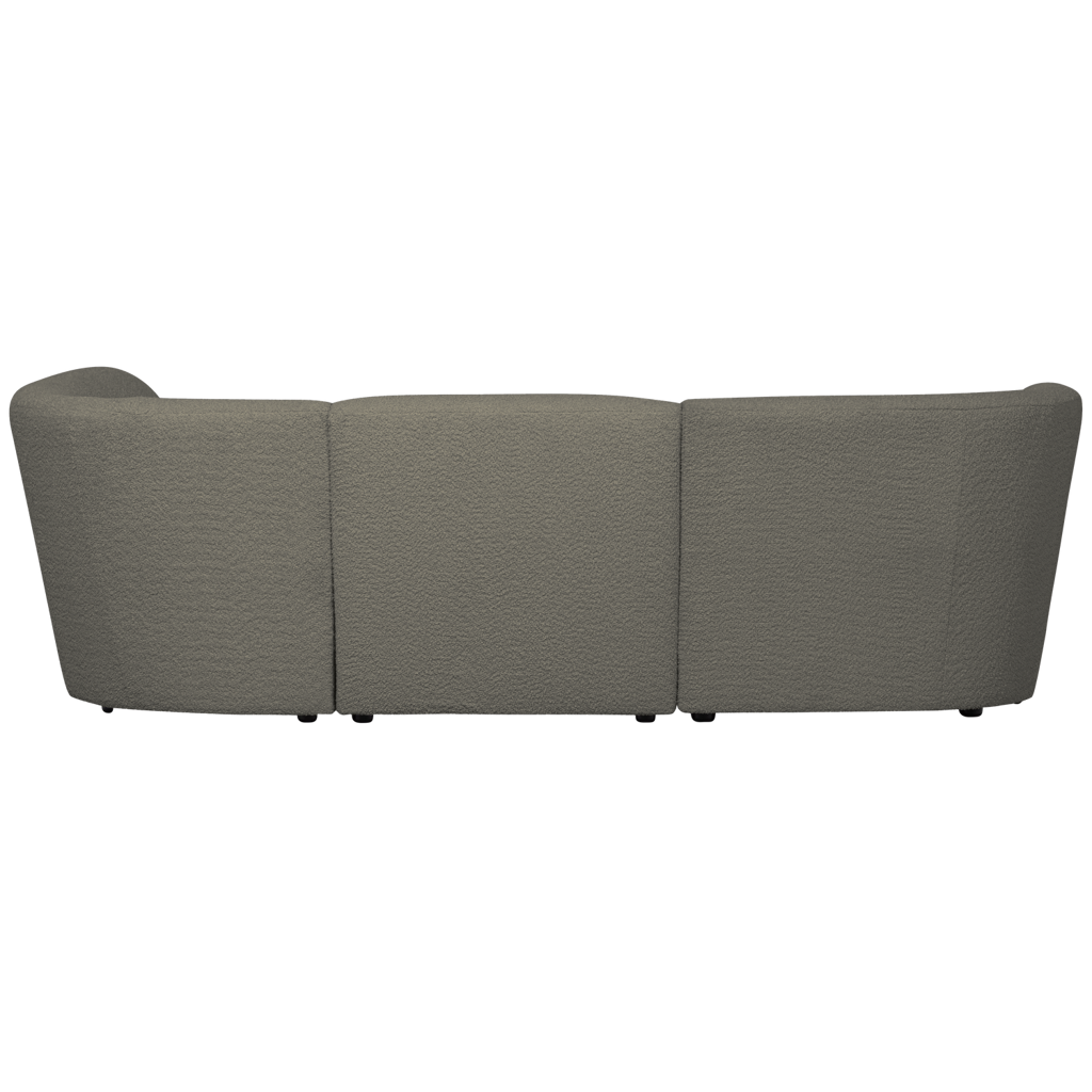 - 3-seater chaise longue sofa - Playful design - Upholstered in a woolly boucle (100% polyester) - H 70 cm x W 230 cm x D 138 cm The Coco series, from the collection of Dutch interior design brand WOOOD, is very suitable for large and small living spaces. The Coco elements are very compact in size, have a softly rounded design and can also be placed loose in the room because of the upholstery on each side. Material Our soft Almón boucle has an elegant texture that brings instant warmth to the home. The boucle fabric has a Martindale of 60,000, which means it is suitable for fairly intensive use. The dense weave ensures the strength of the fabric, which means the Almón boucle will not wear or tear easily. Each colour also has a high colour fastness, but it is recommended to avoid direct sunlight to avoid colour shades. Dimensions - Height: 70 cm - Width: 230 cm - Depth: 138 cm - Seat height: 42 cm - Seat width: 190 cm - Seat depth: 52/118 cm - Armrest height: 70/28 cm - Banister thickness: 20 cm - Leg height: 2 cm - Leg thickness: ø 3 cm - Weight capacity: 100 kg per seat Care instructions Dab any stains dry immediately with a clean cloth or tissue. Do not rub! Most liquids can be removed with lukewarm water. Use a gentle circular motion from the outside inwards. For years of stain protection, the fabric can be impregnated. Impregnate the seating as soon as possible after receipt to ensure immediate protection. Delivery Coco elements are delivered individually. To protect hard floors, place felt glides on the underside of the plastic floor protectors.