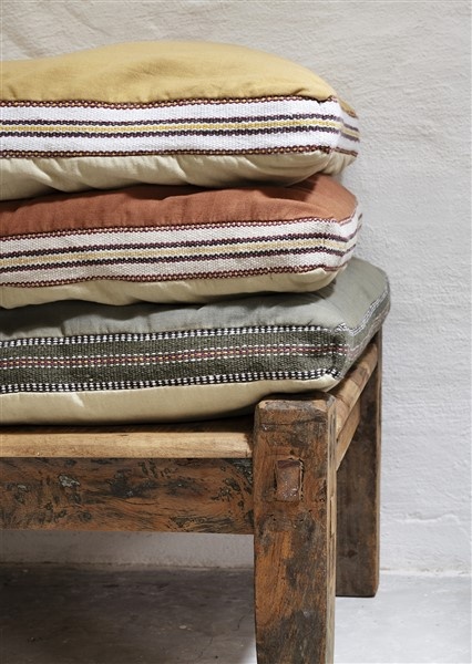 Thoughtfully made, this Cotton mattress uses solution-dyed cotton treated to resist fading and colour run in the wash. Made from durable cotton, it features a concealed zip for easy removal. the soft cotton cover pairs with resilient polyester filling for everyday comfort, while the removable polyester filling lets you air, plump or replace the inner over time. tones of mustard, sand and white work quietly with natural wood, rattan and painted surfaces, making this Cotton mattress a flexible piece that moves from sofa to floor to terrace as seasons change.