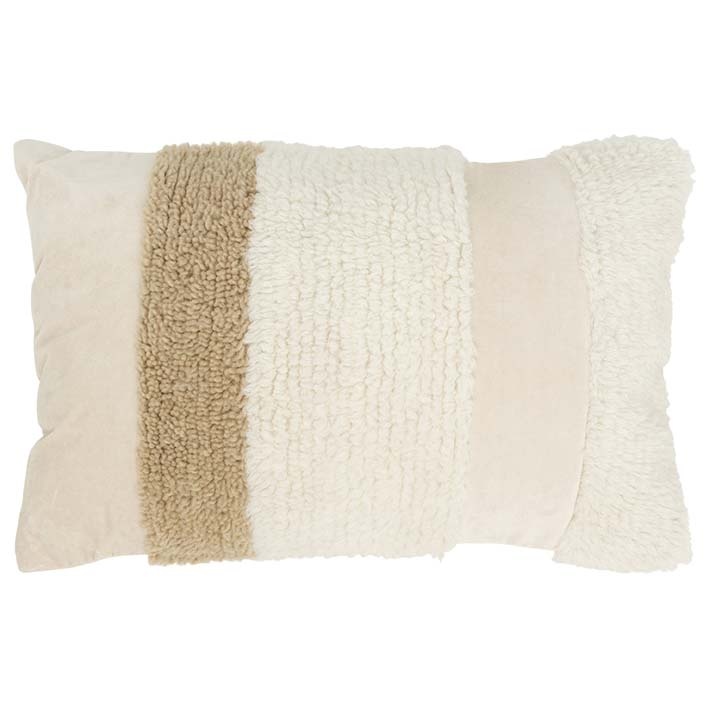 Comfy, cuddly and irresistibly soft – meet Urban Nature Culture’s handmade cushion Noah. An artisan-made cushion which combines cotton velours with hairy, woolen strips. Different materials and textures in natural shades join forces – as cushion Noah adds softness, tactility and character to your interior. Living room, dining bench, bed or favourite armchair – the soft fabrics and inspiring design of cushion Noah makes your house a home. Care instructions: hand-wash only. Cushion pad is filled with recycled polyester." Material: 50% Wool/ 50% Cotton Characteristics of the product: