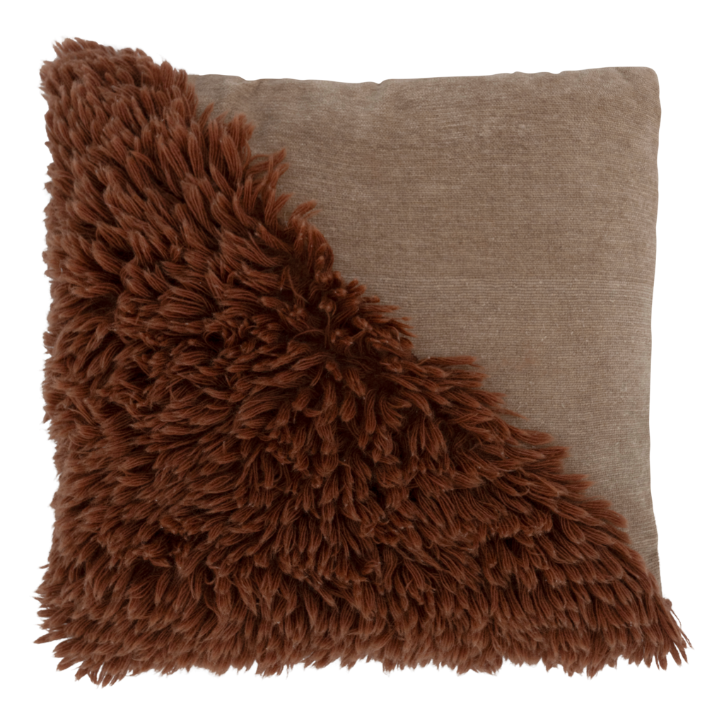 Soft velours meets long hair in rich tones of red and taupe in this cosy cushion. Its layered look adds dimension to any sofa or bed. Filled with recycled polyester for guilt-free comfort.