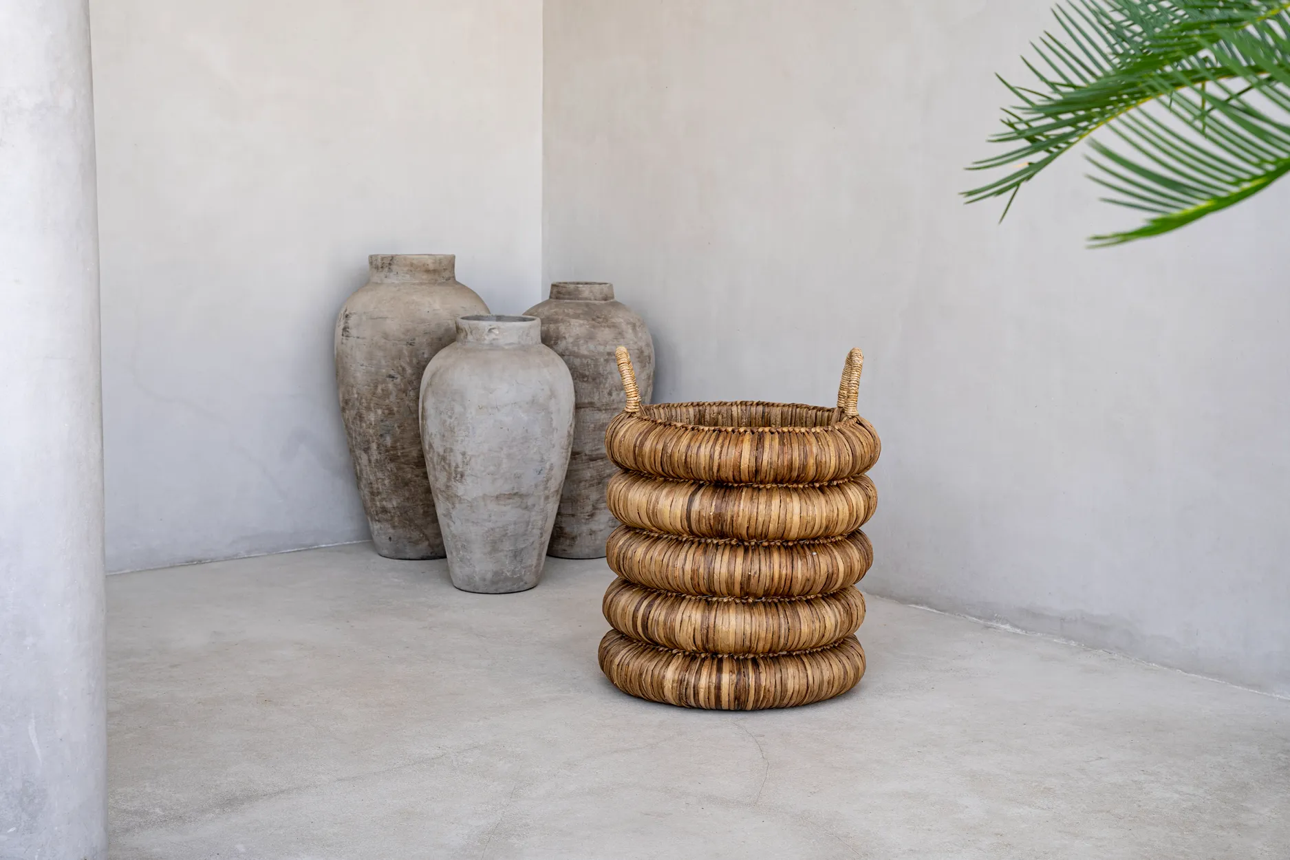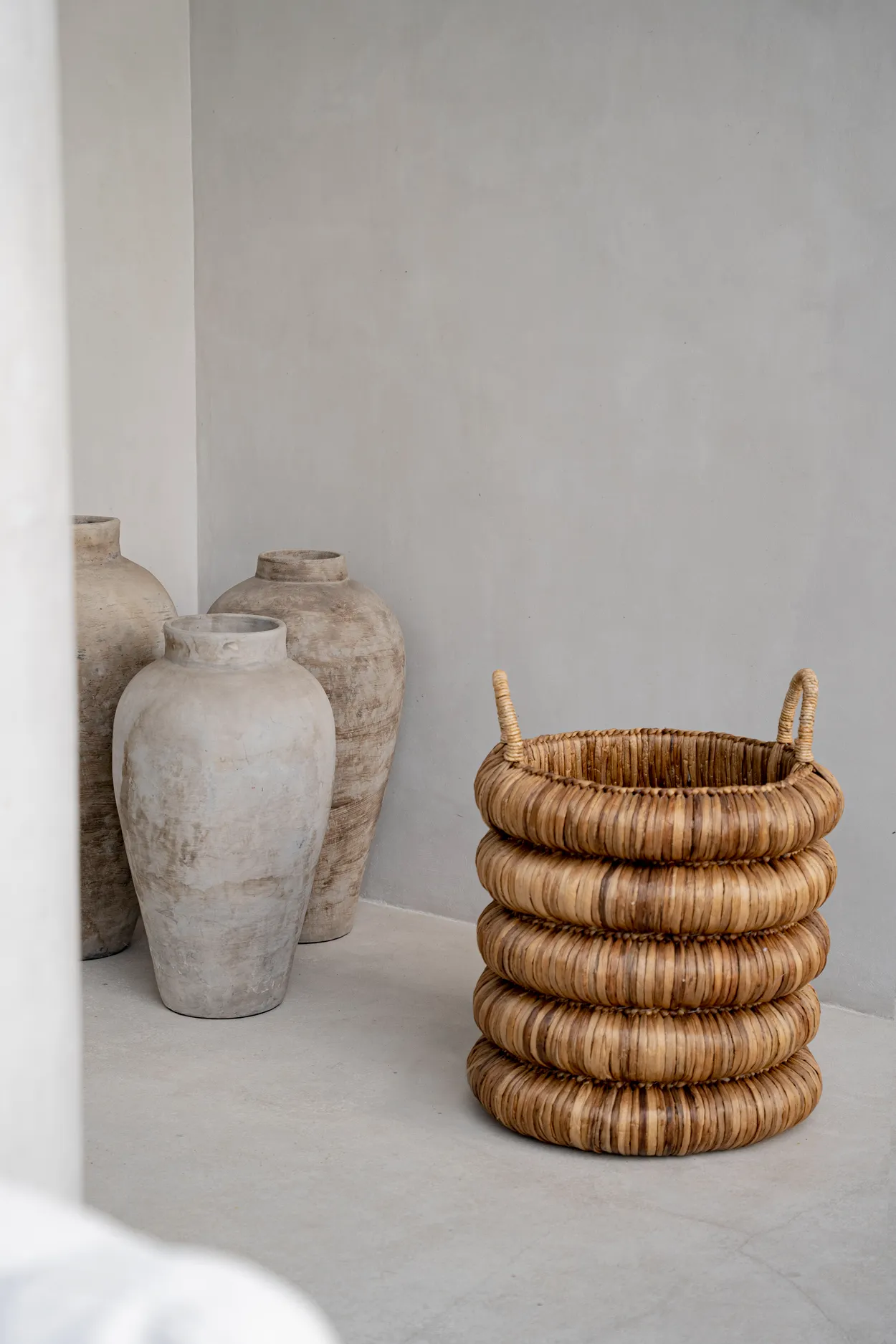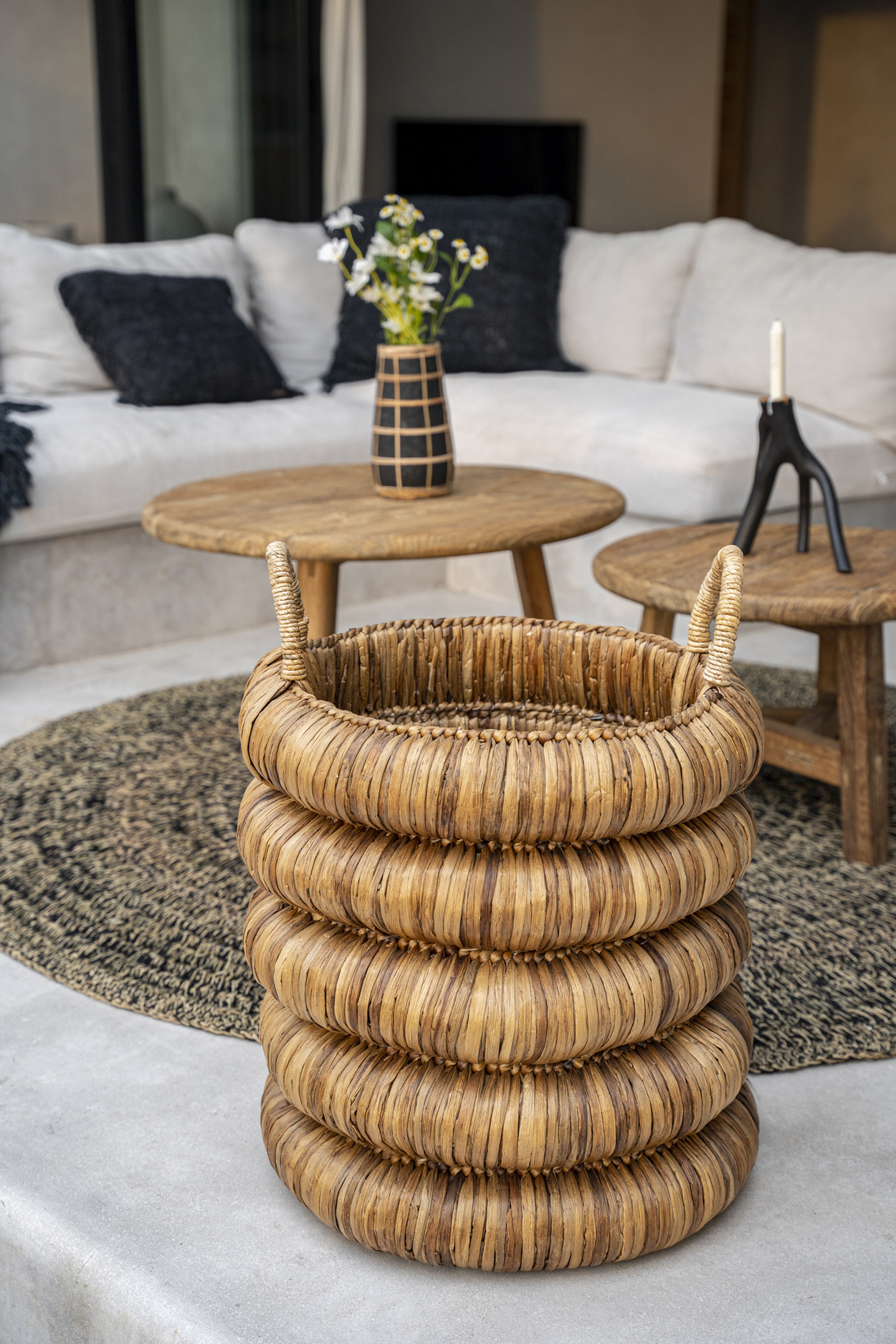 Onze Chunky mand is groot, gedurfd en mooi. Gemaakt van waterhyacint, voegt dit designstuk een prachtige touch toe aan je interieur. Met handvatten voor eenvoudige verplaatsing, is deze mand perfect als wasmand of als plek voor je favoriete plant. Met een hoogte van 65 cm, breedte van 44 cm en lengte van 44 cm, past deze mand perfect in elke ruimte. Gemaakt van duurzaam waterhyacintmateriaal, is deze natuurlijke mand een milieuvriendelijke keuze. Voeg een vleugje elegantie toe aan je huis met onze gewelfde Chunky mand!