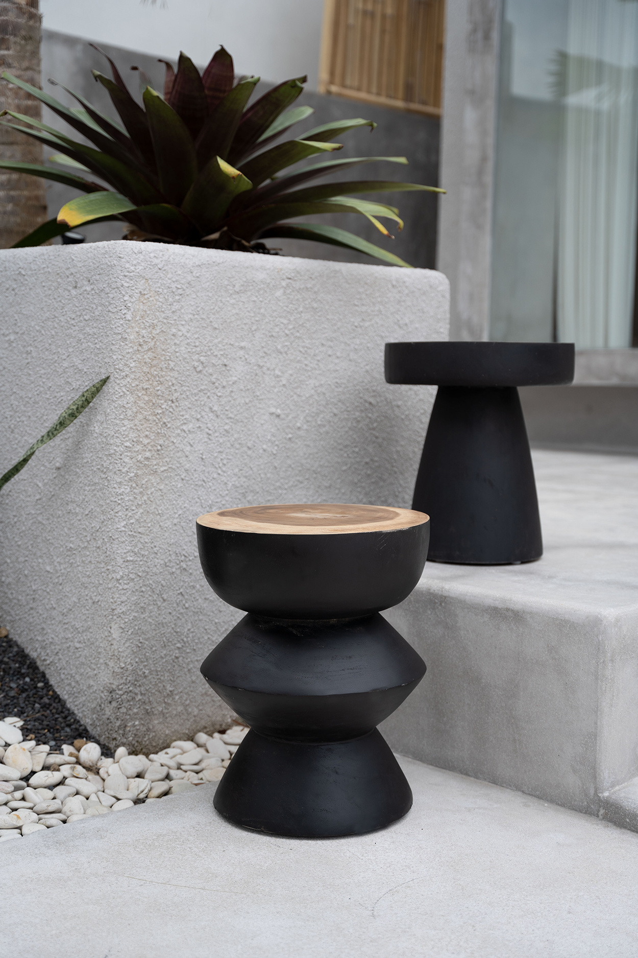 Karbun (charcoal) is exactly what this stool is reminiscent of - the dark, glossy beauty of a black piece of furniture. The black coated suar wood is handcrafted into this smooth, round and organic design that will look great in any room as a stool, side table or bedside table.