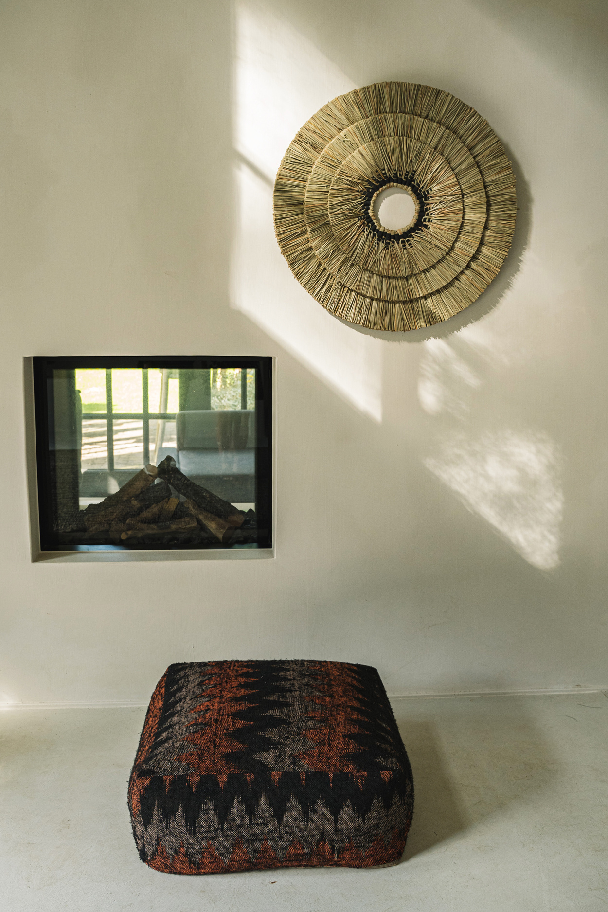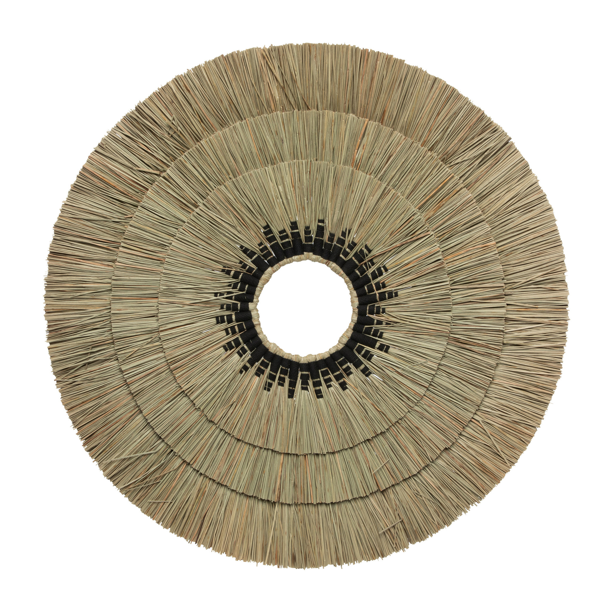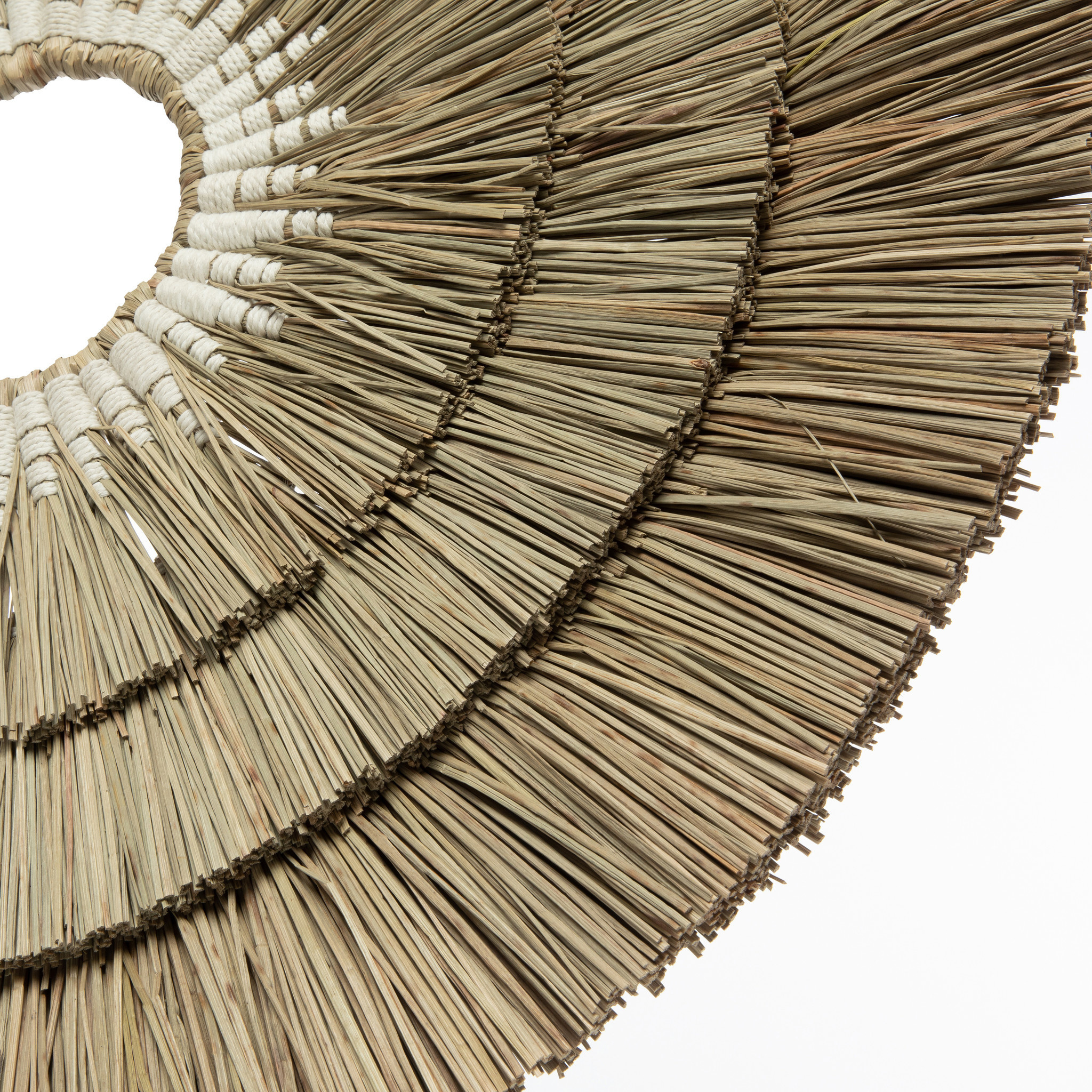 Dit prachtige wanddecoratiestuk is met de hand gemaakt van mengdonggras en zwart katoen. De natuurlijke uitstraling en rustige kleurencombinatie vormen de perfecte mix van bohemien en kust.