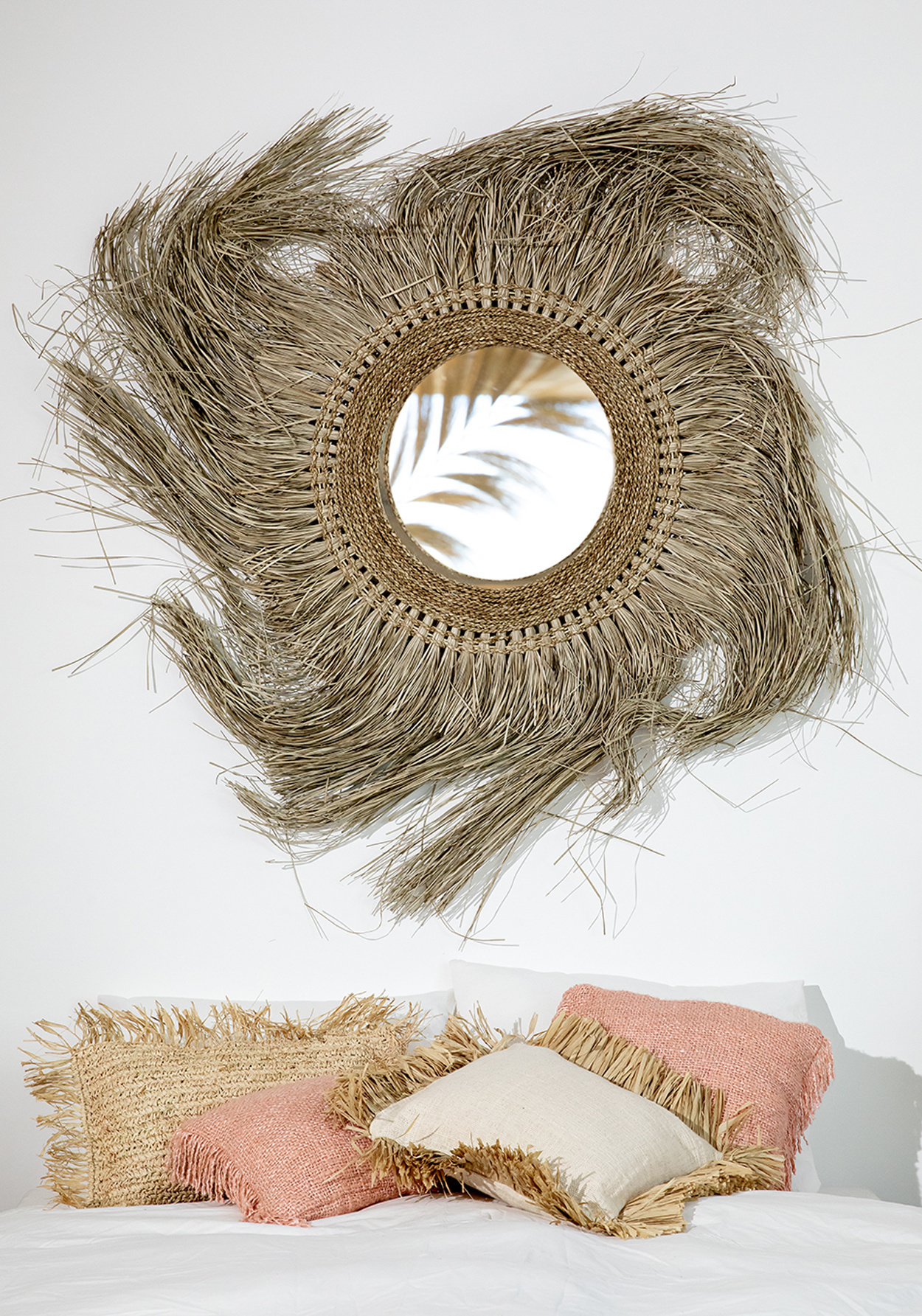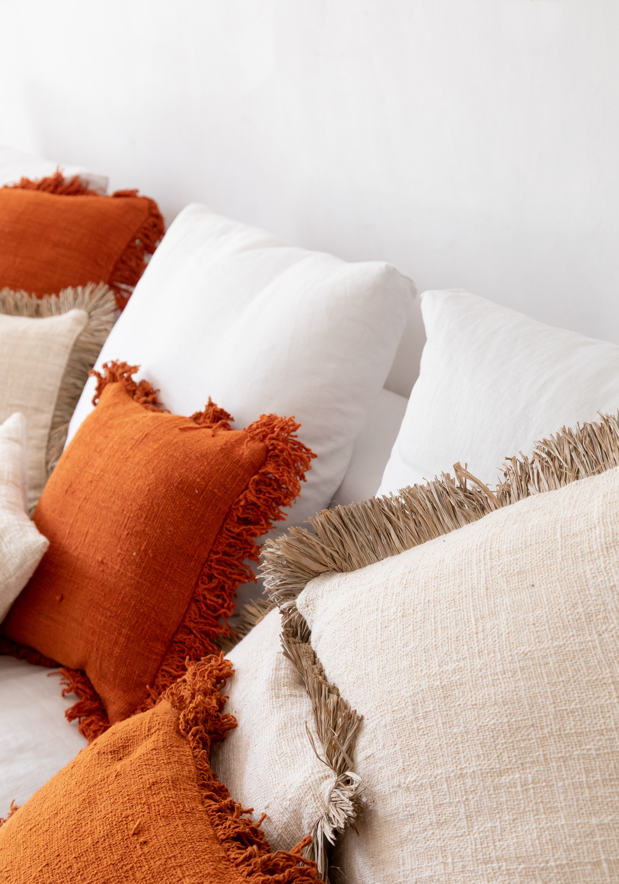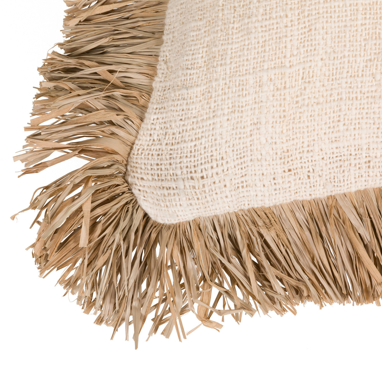 Our cotton cushions with raffia fringe will add a beautiful element of texture to your soft decor. An indispensable piece to give your interior, garden or terrace a boho touch. Endless possibilities!Inner cushion not included.