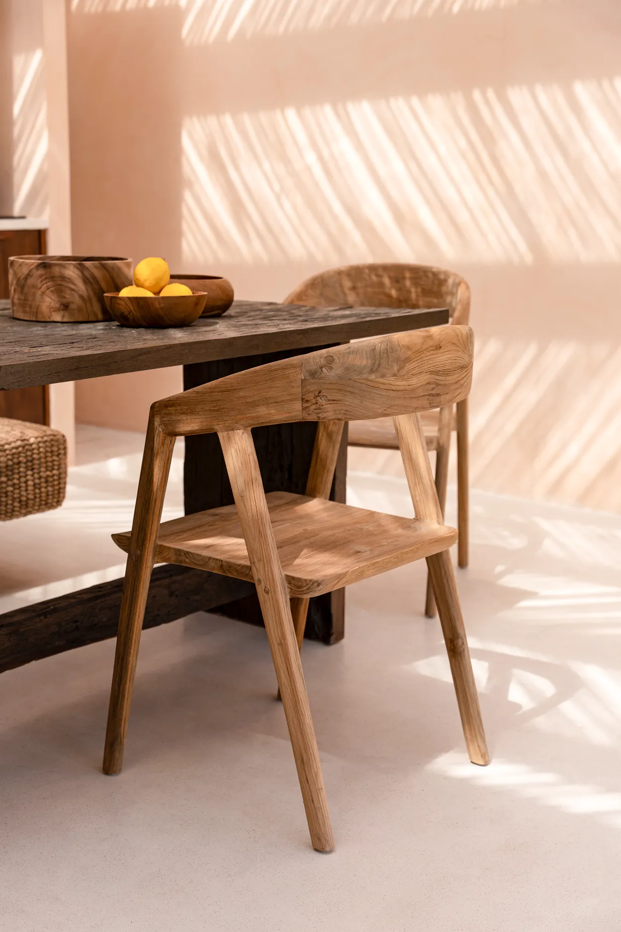 De Teluk eetkamerstoel is een elegante en tijdloze toevoeging aan je eetkamerinrichting. Met een stevige rugleuning kun je comfortabel urenlang aan tafel zitten. Gemaakt van hergebruikt teakhout, maak je met deze stoel ook een milieuvriendelijke keuze. Het geüpcyclede hout heeft bovendien veel karakter. De stoel kan zowel binnen als buiten gebruikt worden, maar let op bij vochtig weer. In de kleur naturel, met een hoogte van 83 cm, breedte van 50 cm en lengte van 50 cm. Materialen: gerecycled teakhout.