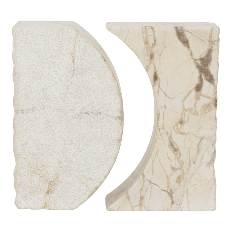 Each collection of Amsterdam interior brand Urban Nature Culture is inspired by nature, made with natural materials and created by inventive minds and skilled artists. With decorative object Runda, part of UNC’s Fall & Winter 2024 collection, you’re adding the design of nature itself. Runda is made from sofita marble, a special type of marble quarried in India and used in a variety of interior objects and applications. Carrying the warm shade of sand with a strong marble drawing of red-brownish veins, Runda is rough and untamed on one side and with a smooth finish on the other. Two elements which complement each other – and stand out in every display. On the sidetable in the hallway, amidst figurines, treasures and picture frames in the cabinet in your living room, or in the bathroom, adding a sense of luxury and art. Care instructions: clean with a dry cloth. Material: Marble Characteristics of the product: - Can be variation for size/thickness/color, natural product, depends on the extraction of the stone, every piece will be unique - Different side, polished and leather finish, so you can showcase this in different type of ways"