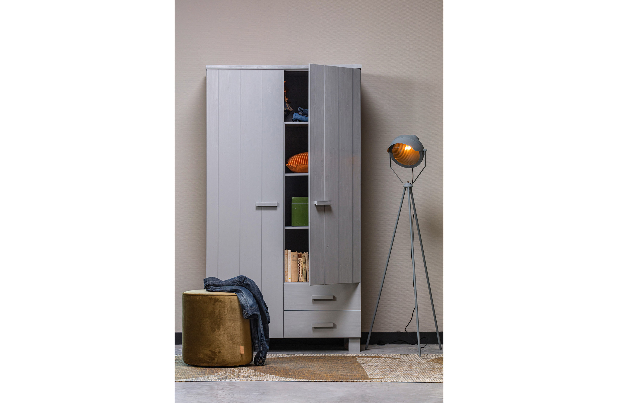 WOOOD Dennis Wardrobe Pine Concrete Grey Brushed