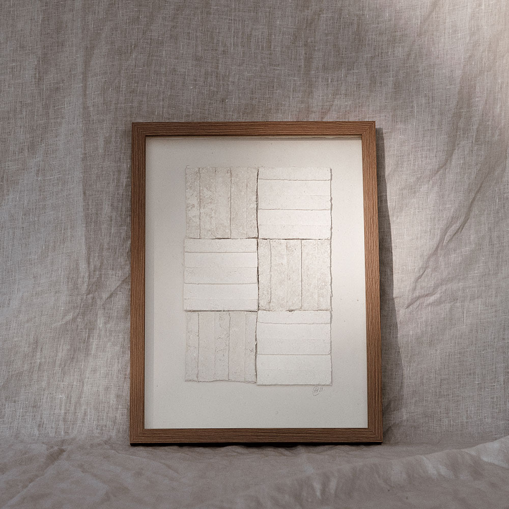 The various works of Studio AT are inspired by the Japanese folding method, durable, various material studies and captured in a three-dimensional work according to their own design. Each work is handmade and unique. The materials of the works are made as much as possible from natural and recycled materials: paper, paper pulp, cardboard and wood. All works are delivered incl. frame.