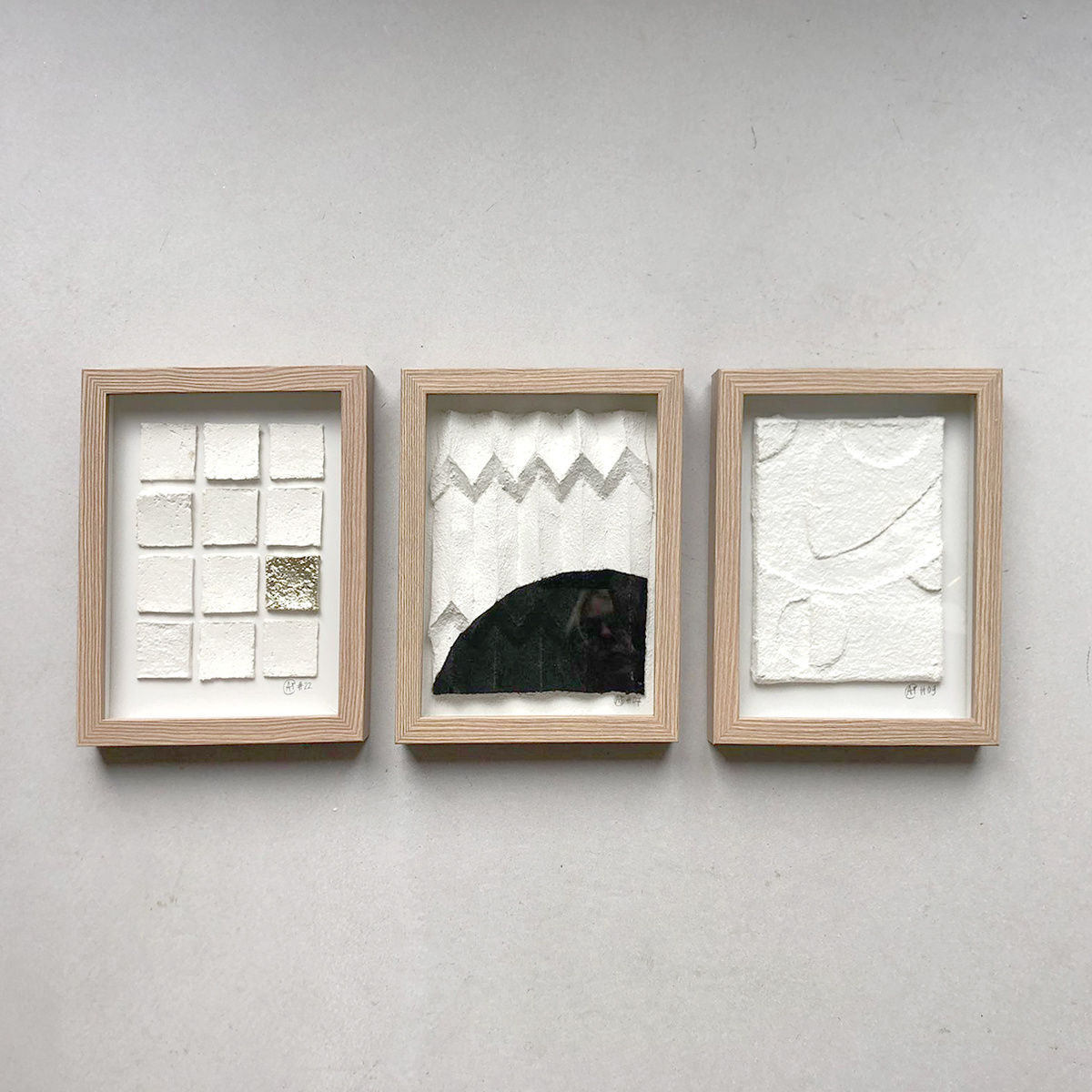 The various works of Studio AT are inspired by the Japanese folding method, durable, various material studies and captured in a three-dimensional work according to their own design. Each work is handmade and unique. The materials of the works are made as much as possible from natural and recycled materials: paper, paper pulp, cardboard and wood. All works are delivered incl. frame.