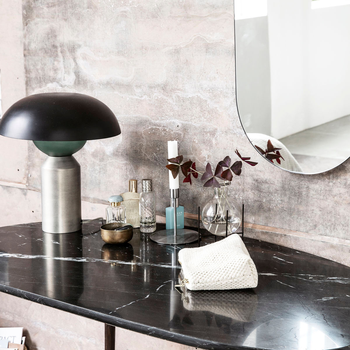 Liven up your home office with a new, beautiful desk from House Doctor. The desk is called Eda and measures 110 cm in length, 61,8 cm in width and 74 cm in height. Eda has an oval tabletop in dark marble that adds a special touch to the piece of furniture. Regardless of style and already existing décor, Eda will suit any type of home. Pair Eda with a gorgeous lamp, sit down and get to work. The desk is made of marble and iron. Material: Marble, Iron Care instructions: Clean with a moist cloth