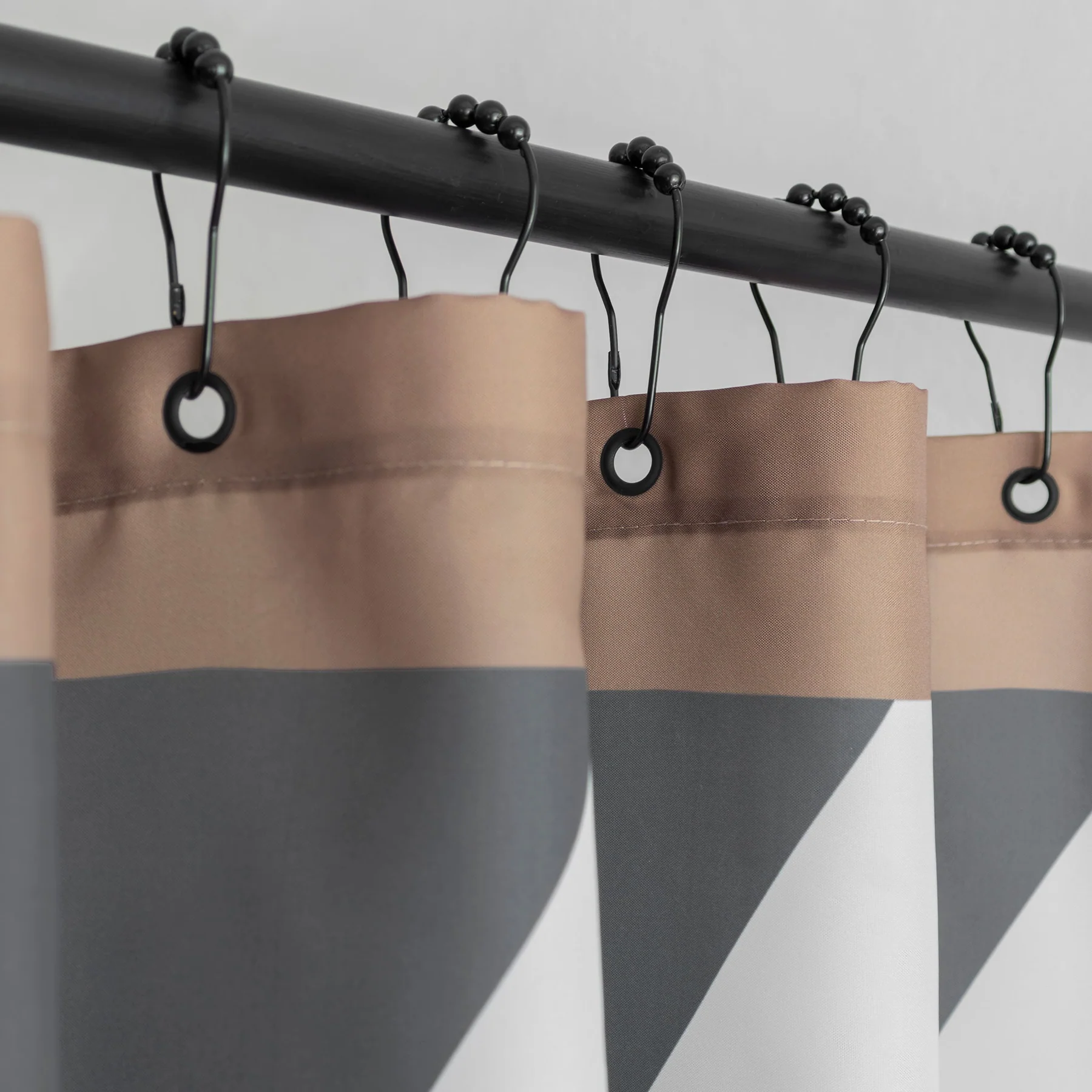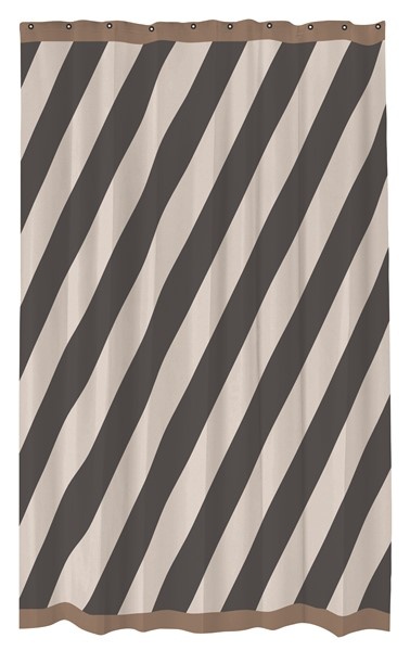 Give your bathroom a modern update with the DIAGONAL shower curtain that emphasises both functionality and graphic design. This elegant curtain is decorated with dark grey and off-white diagonal stripes, complemented by a beautiful light brown border. The black metal eyelets in the border ensure easy hanging.