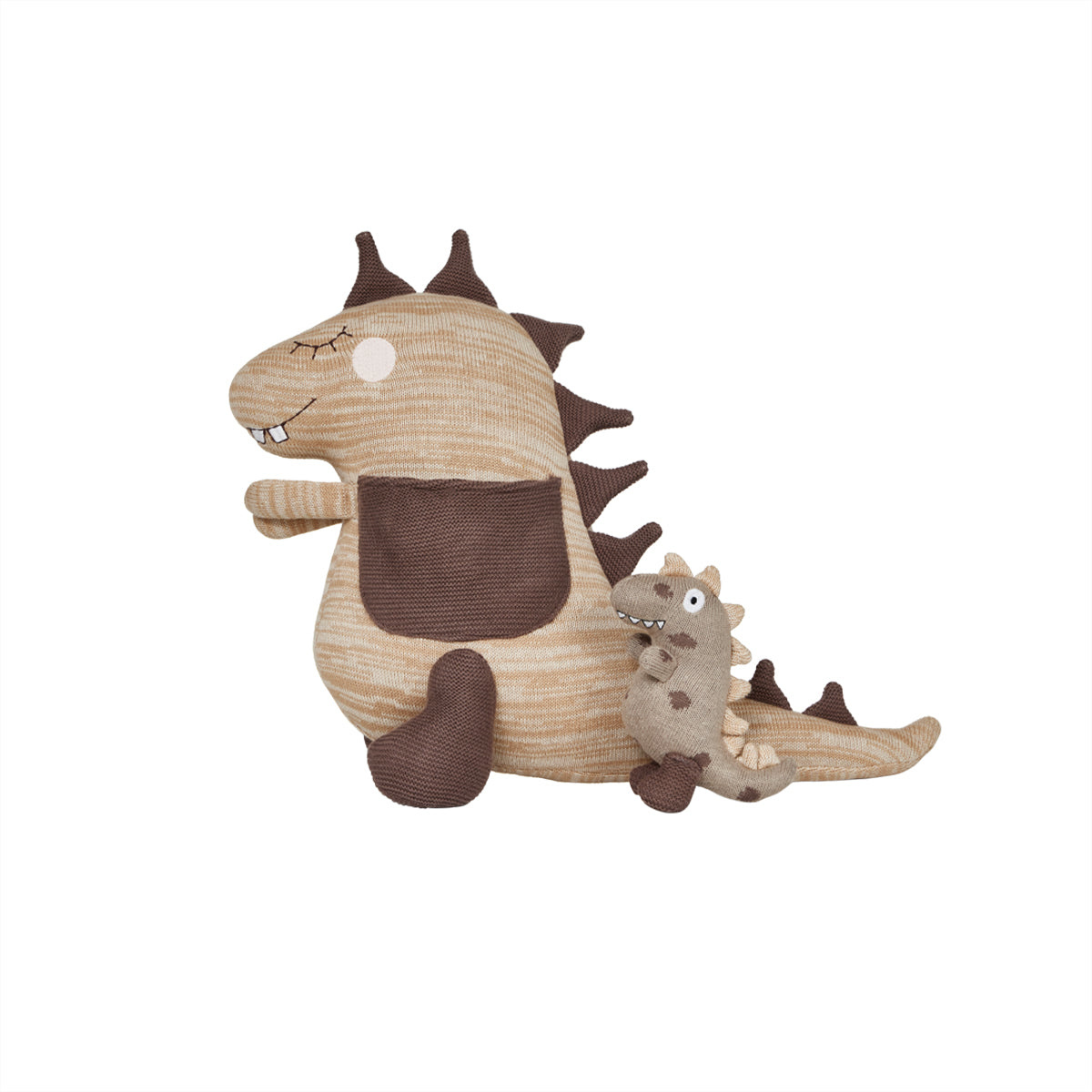 Sweet Dina & Bobo Dinosaur are ready to move into your home! Note the small pocket where Bobo lives safely and comfortably with his mother – Bobo is detachable. The dino is perfect for playing with, hugging and snuggling with at bedtime.