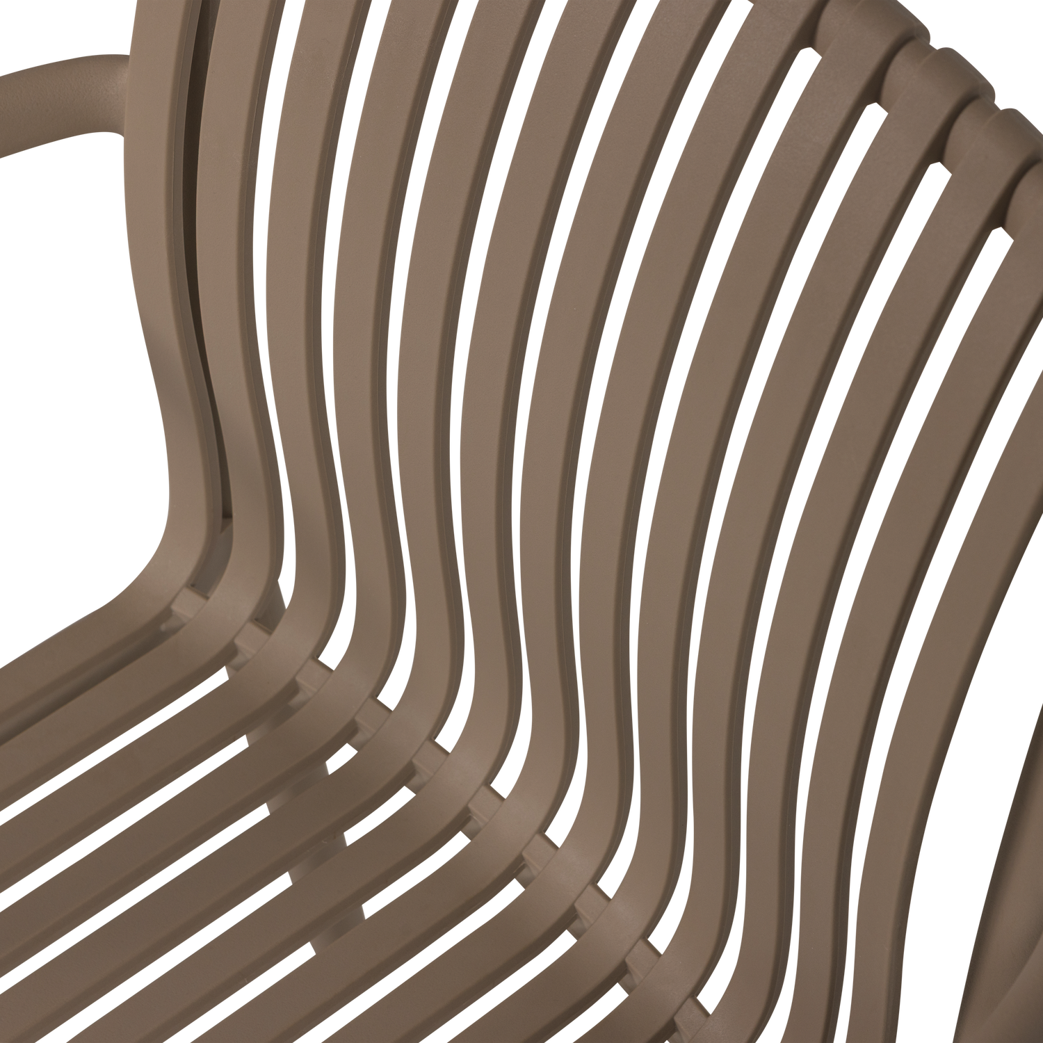 Deze tuinstoel is gemaakt van polypropyleen, een kunststofsoort die speciaal geschikt is voor buitengebruik. Het lichtgewicht materiaal maakt het gemakkelijk om de stoel te verplaatsen wanneer je de indeling van je buitenruimte wilt aanpassen. Het materiaal bevat UV-bescherming, waardoor de kleur langer mooi blijft ondanks blootstelling aan zonlicht.